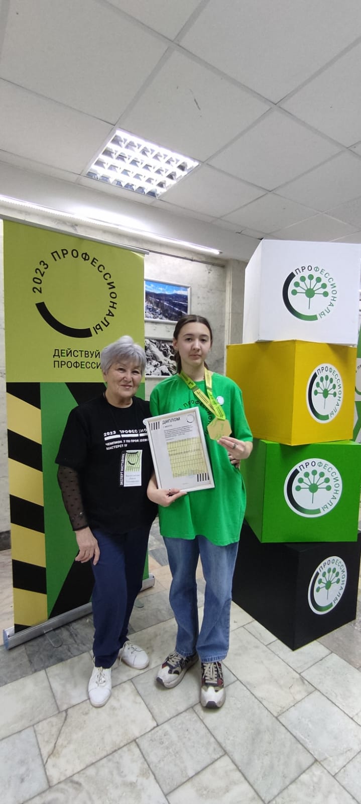 Золотая медаль - Агафонова Яна и Чернова Ирина, студенты колледжа, специальность «Преподавание в начальных классах», эксперт-наставник Бикмаева Айгуль Равильевна, преподаватель колледжа