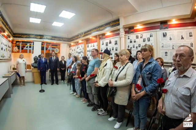 Присутствующие на открытии мемориальной доски почтили Минутой молчания память героя, отдавшего свою жизнь за Родину, и возложили цветы к мемориальной доске.