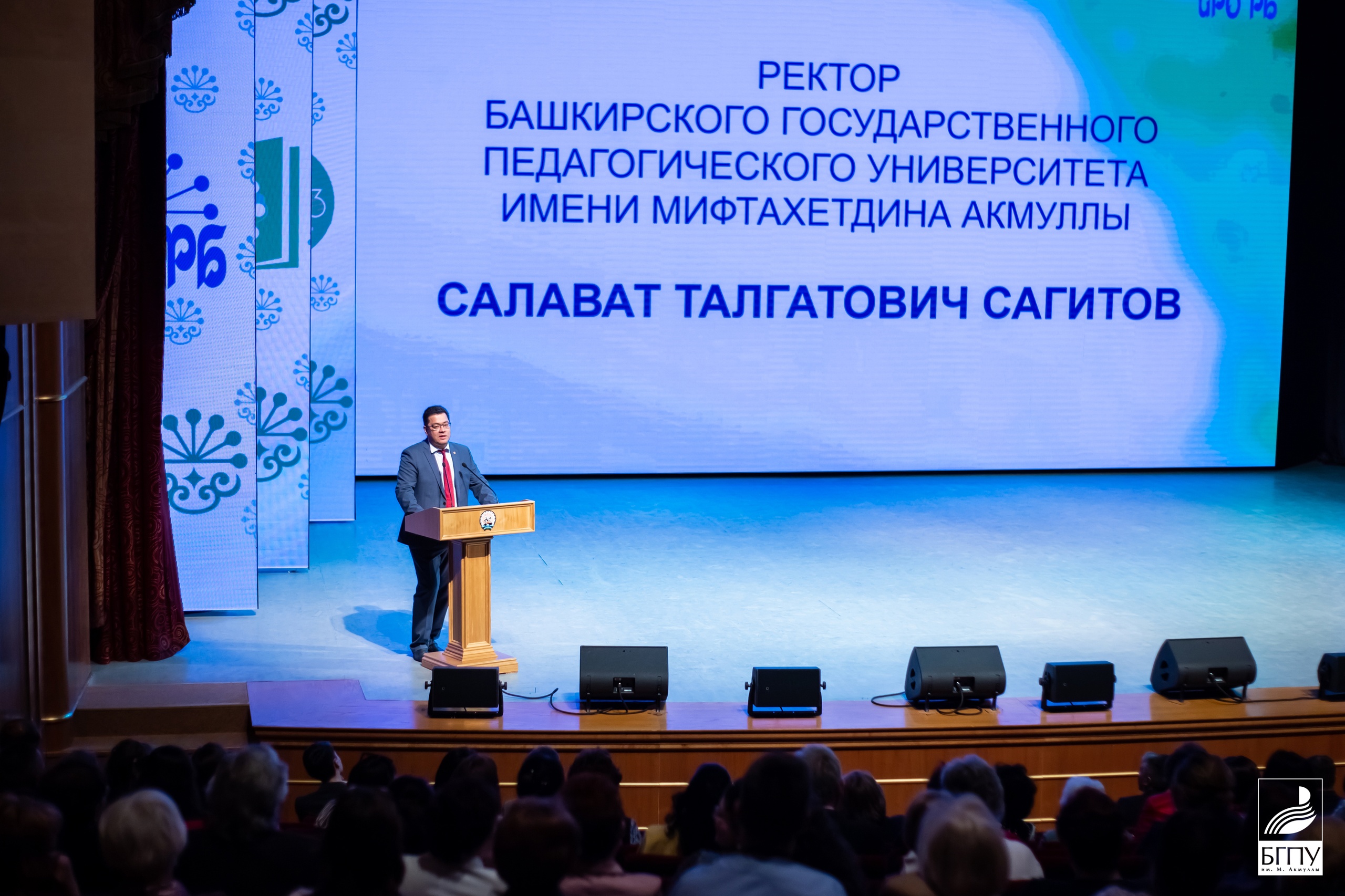 Председатель Совета ректоров вузов Башкортостана, ректор БГПУ им. М. Акмуллы Салават Сагитов выступил с поздравительной речью в адрес коллектива ИРО: