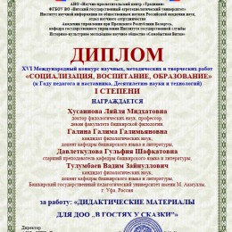 Преподаватели факультета башкирской филологии приняли участие в XVI Международном конкурсе научных, методических и творческих работ «Социализация, воспитание, образование», посвященном Году педагога и наставника и десятилетию науки и технологий.