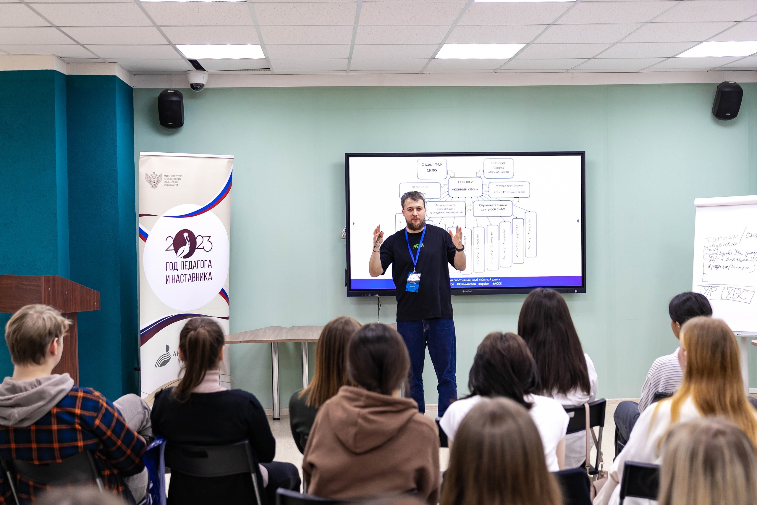 Членам студенческого спортклуба «Арслан» и студсовета Института физической культуры и здоровья человека выпала возможность посетить стратсессию о современных форматах спортивных мероприятий. Спикером стал координатор АССК России по Северо-Кавказскому федеральному округу, исполнительный директор Ставропольской региональной спортивной общественной организации «Южный слон» Василий Садовой.