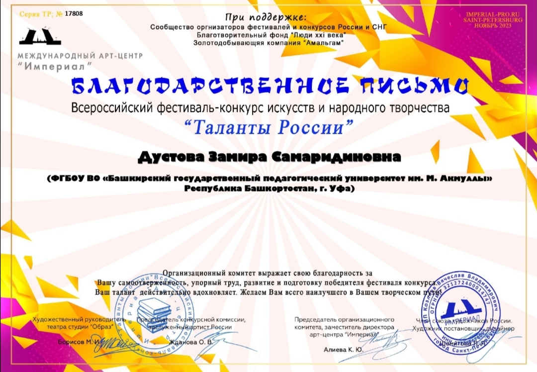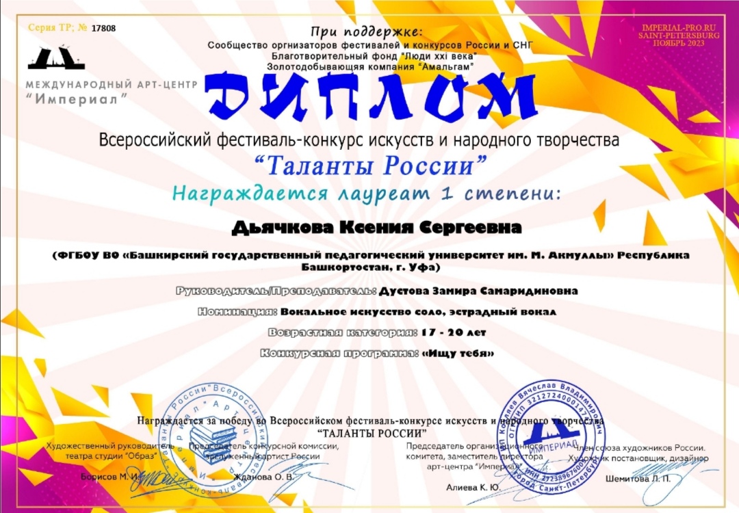 Поздравляем Ксению и преподавателя Замиру Самаридиновну с победой и желаем дальнейших творческих успехов!