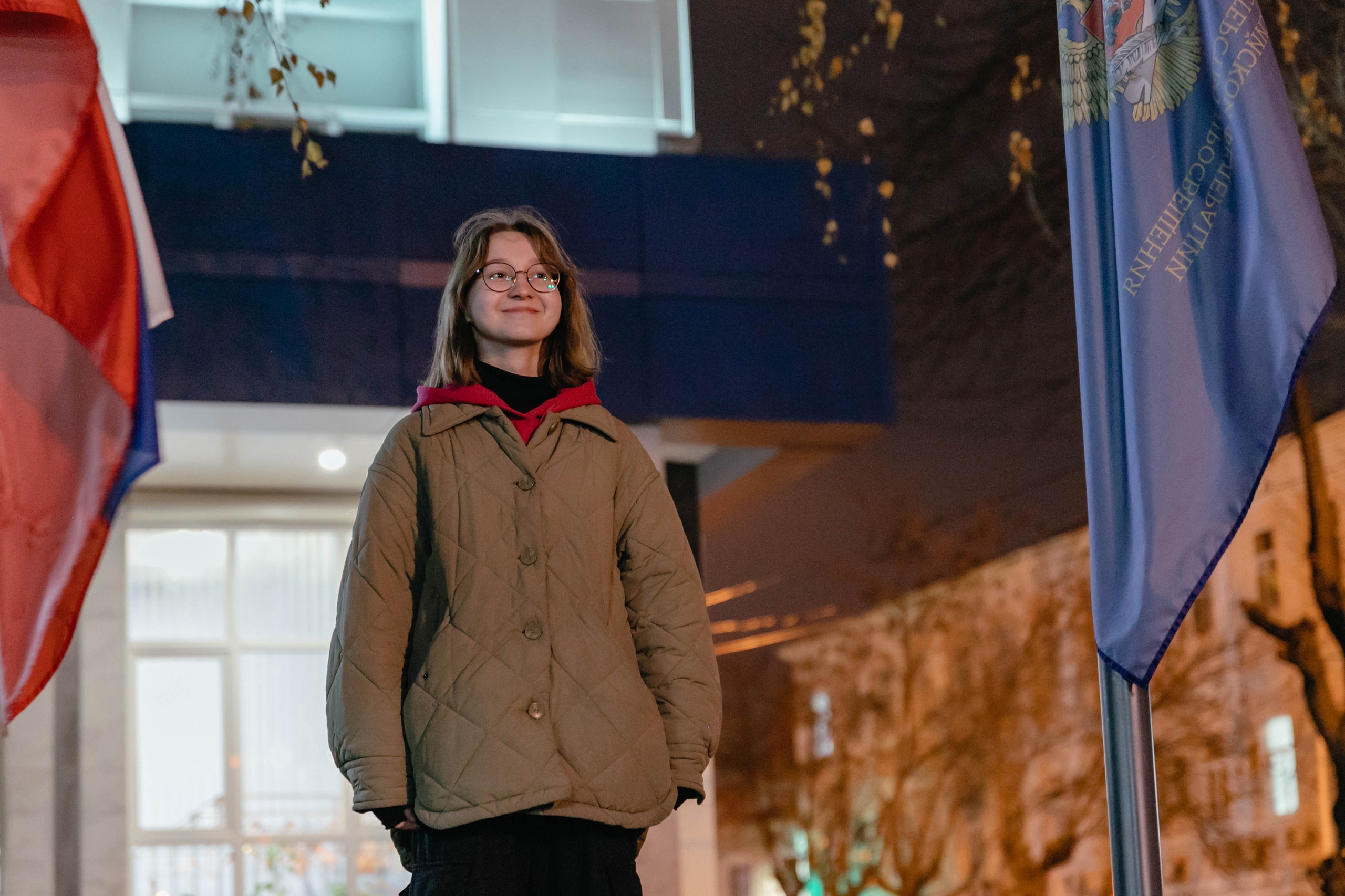 Почетное право поднять флаги предоставили активистам студенческого профсоюза Диане Галиевой, Дарье Кильбахтиной, Аиде Тикиевой и Назгуль Туктамышовой.