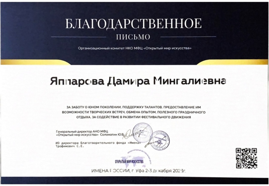 По результатам отборочного этапа Марсель Закиров стал лауреатом 1 степени в номинации «Патриотическая песня». Он получил возможность принять участие в финале, который пройдёт в Ростове-на-Дону в июне 2024 года. Руководителем стала доцент кафедры музыкального и хореографического образования Дамира Яппарова.