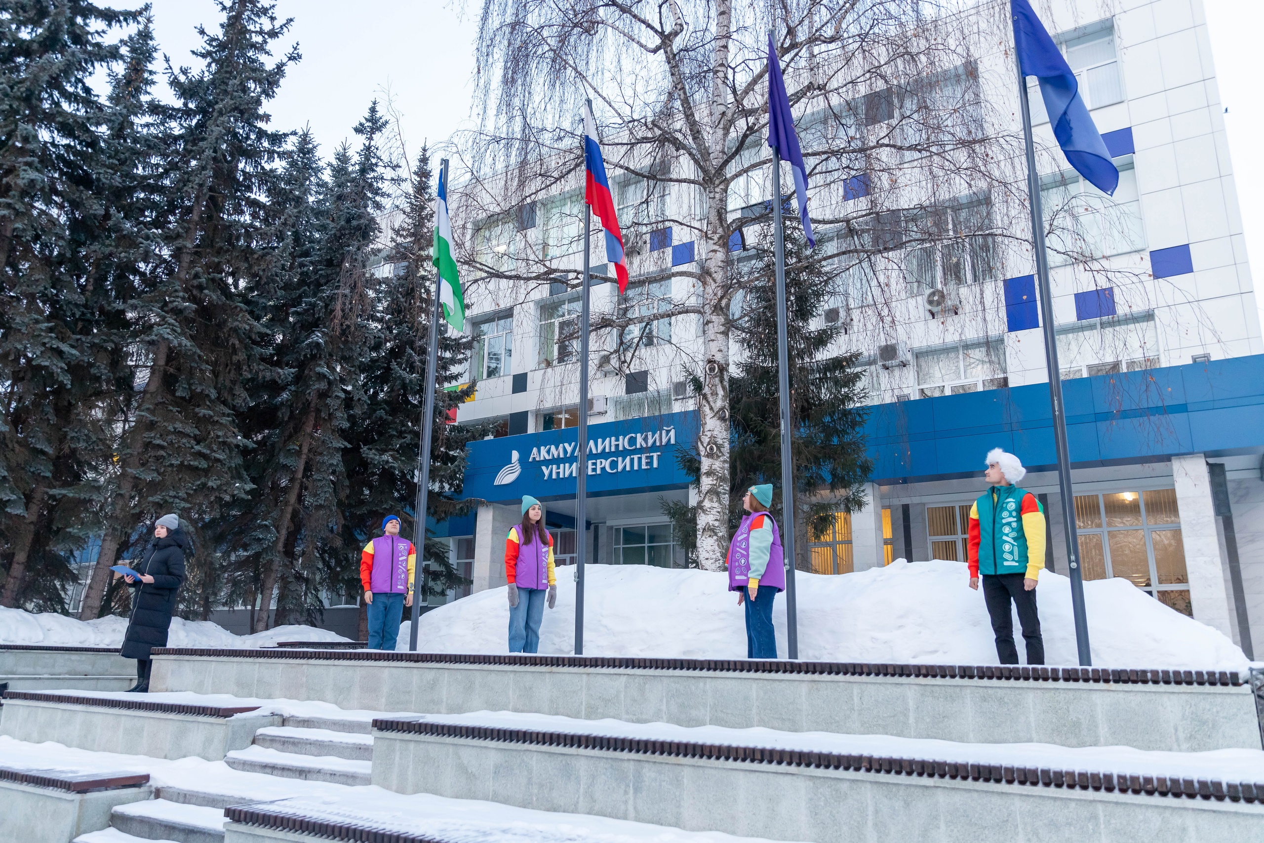 Участники ВФМ подняли флаги перед Акмуллинским университетом