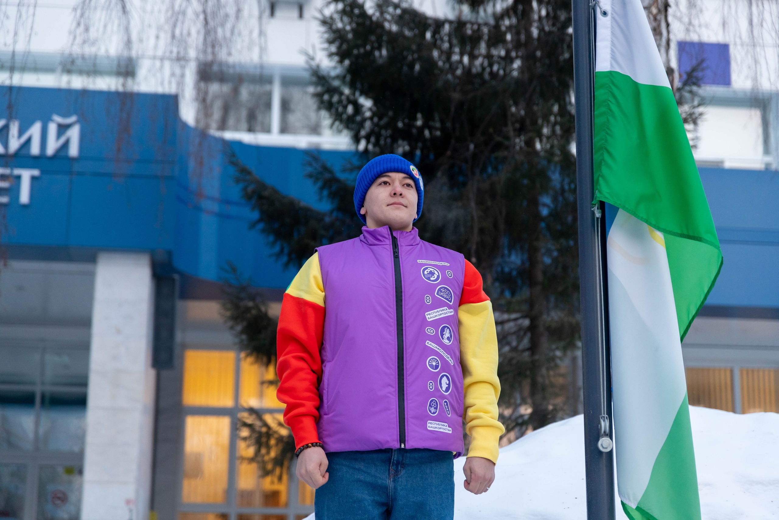 Почетное право поднять флаги было предоставлено участникам делегации Башкортостана на Всемирном фестивале молодёжи, проходившего с 1 по 7 марта на федеральной территории «Сириус»: