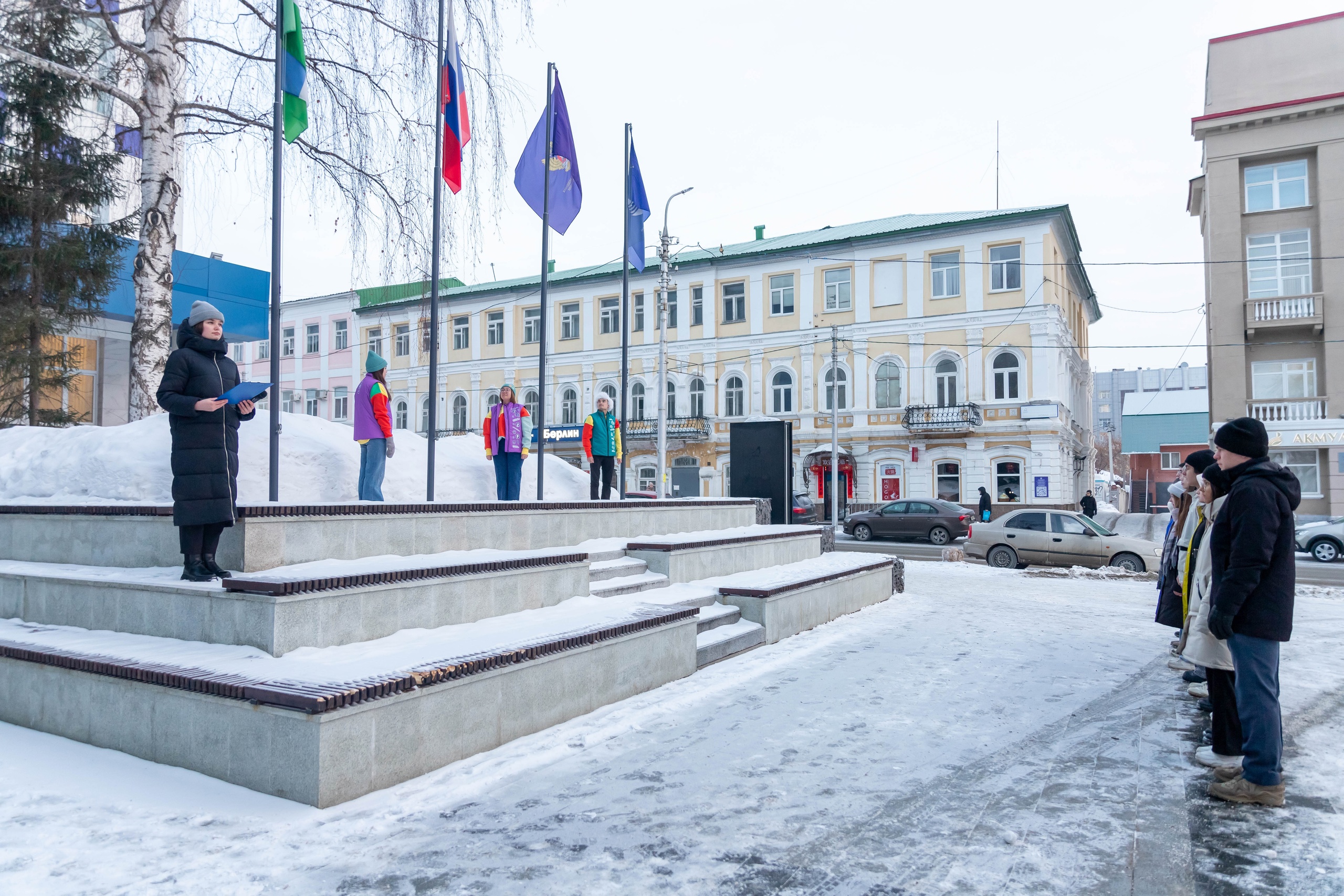 11 марта в БГПУ имени Акмуллы состоялась традиционная торжественная линейка, посвященная церемонии поднятия Государственного флага Российской Федерации, флага Республики Башкортостан, Министерства просвещения России и Акмуллинского университета. В ней приняли участие студенты и преподаватели Института исторического, правового и социально-гуманитарного образования и Института физической культуры и здоровья человека.