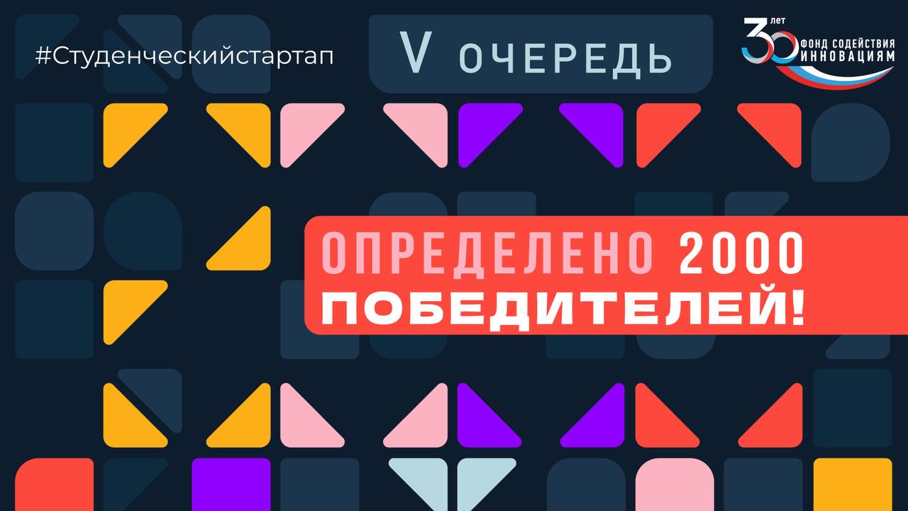 Фонд содействия инновациям объявил результаты конкурса «Студенческий стартап» 5 очереди. Трое наших студентов и аспирантка получили гранты на 1 000 000 рублей! Из 7,7 тысячи заявок отобраны 2 тысячи лучших проектов из разных вузов страны.