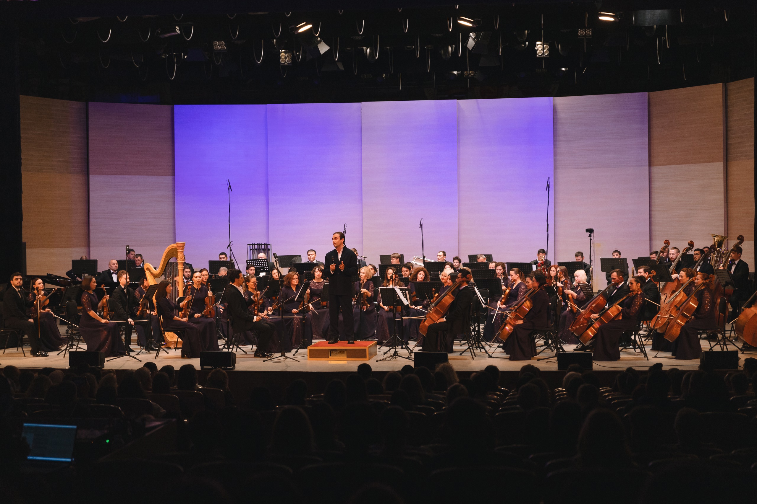 «Рады приветствовать вас в главном концертном зале Республики Башкортостан. Я был в ваших краях, мы играли концерты под вой сирены, и это были незабываемые впечатления. Сегодня вы попали на необычный концерт. Во-первых, это концерт, с одной стороны, конечно, симфонического оркестра, но, с другой стороны, дирижер является автором этого произведения.  Во-вторых, концерт, что необычно, пройдет в трёх отделениях, чтобы в антрактах музыканты немного отдохнули, потому что это очень динамичная симфония. Вы когда-нибудь были на концертах симфонических оркестров? Если не были, я радуюсь за вас, потому что вы впервые сегодня услышите, почувствуете, что такое 100 музыкантов на сцене. Это такая энергетика, которая захватывает и всех музыкантов, и публику».