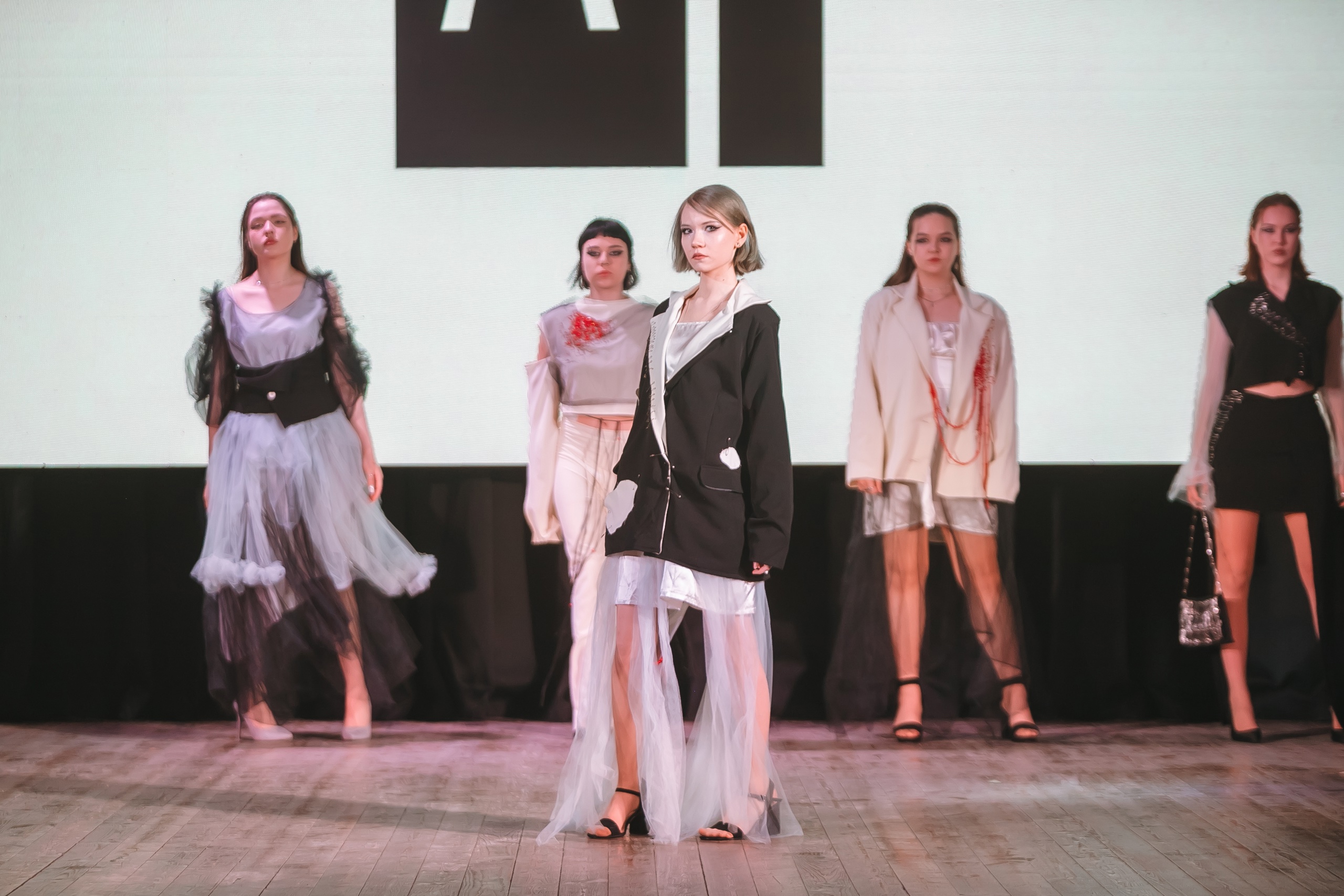 Праздничный вечер украсили выступления творческих коллективов Акмуллинского университета, особенно ярким номером стал показ коллекций одежды, разработанных студентами ХГФ.