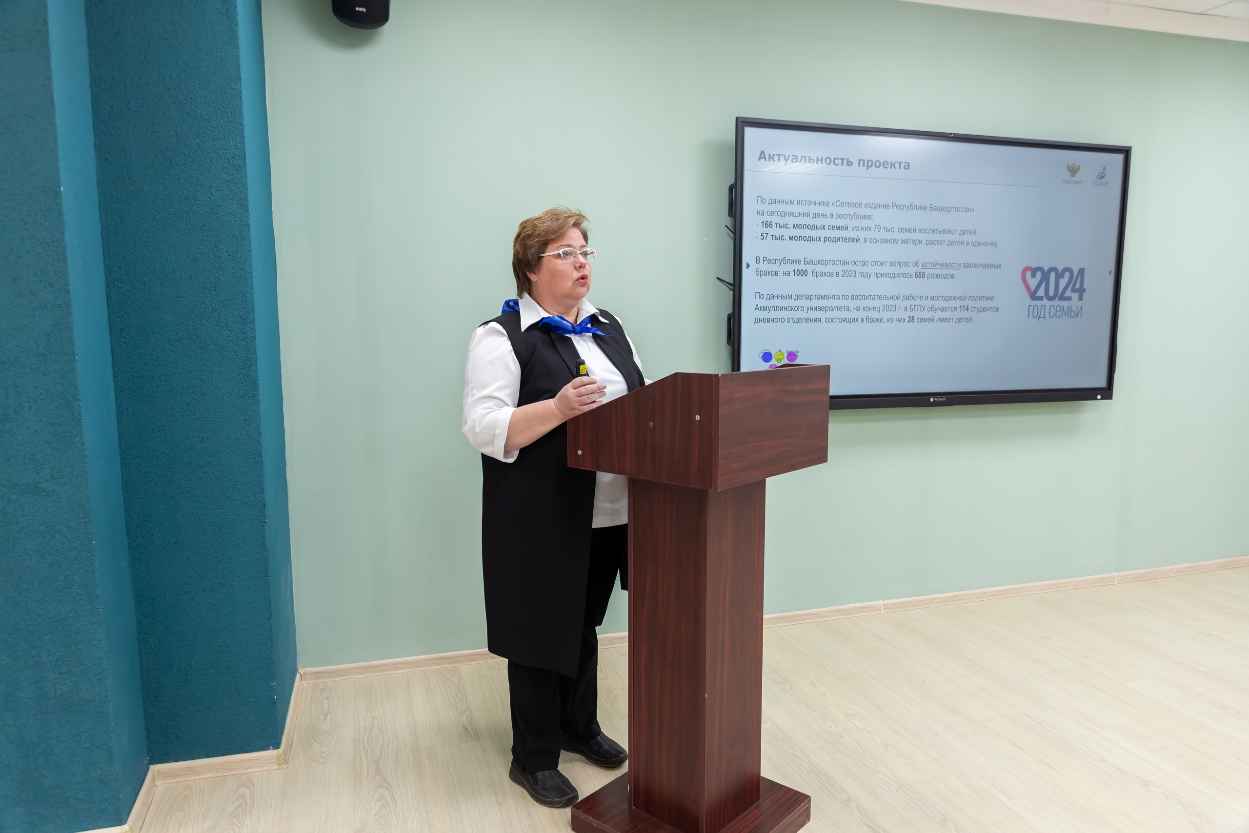 О работе центра подготовки студенческой молодежи к семейной жизни «Семейный очаг» рассказала заведующая кафедрой профессионального и социального образования Екатерина Трофимова. Центр был создан в вузе в 2024 году на базе Института педагогики, его работа нацелена на формирование у студентов положительного образа семьи и ориентацию на семейный образ жизни. Проведенные образовательные мероприятия показали, что тема актуальна для студентов БГПУ им. М. Акмуллы, ведь на дневном отделении в вузе обучается 114 студентов, состоящих в браке, из них 28 семей имеет детей. При обсуждении возможностей  масштабирования проекта Анна Тимофеева обратила внимание авторов на сложные аспекты проекта, на которые организаторам необходимо учесть в дальнейшей работе.