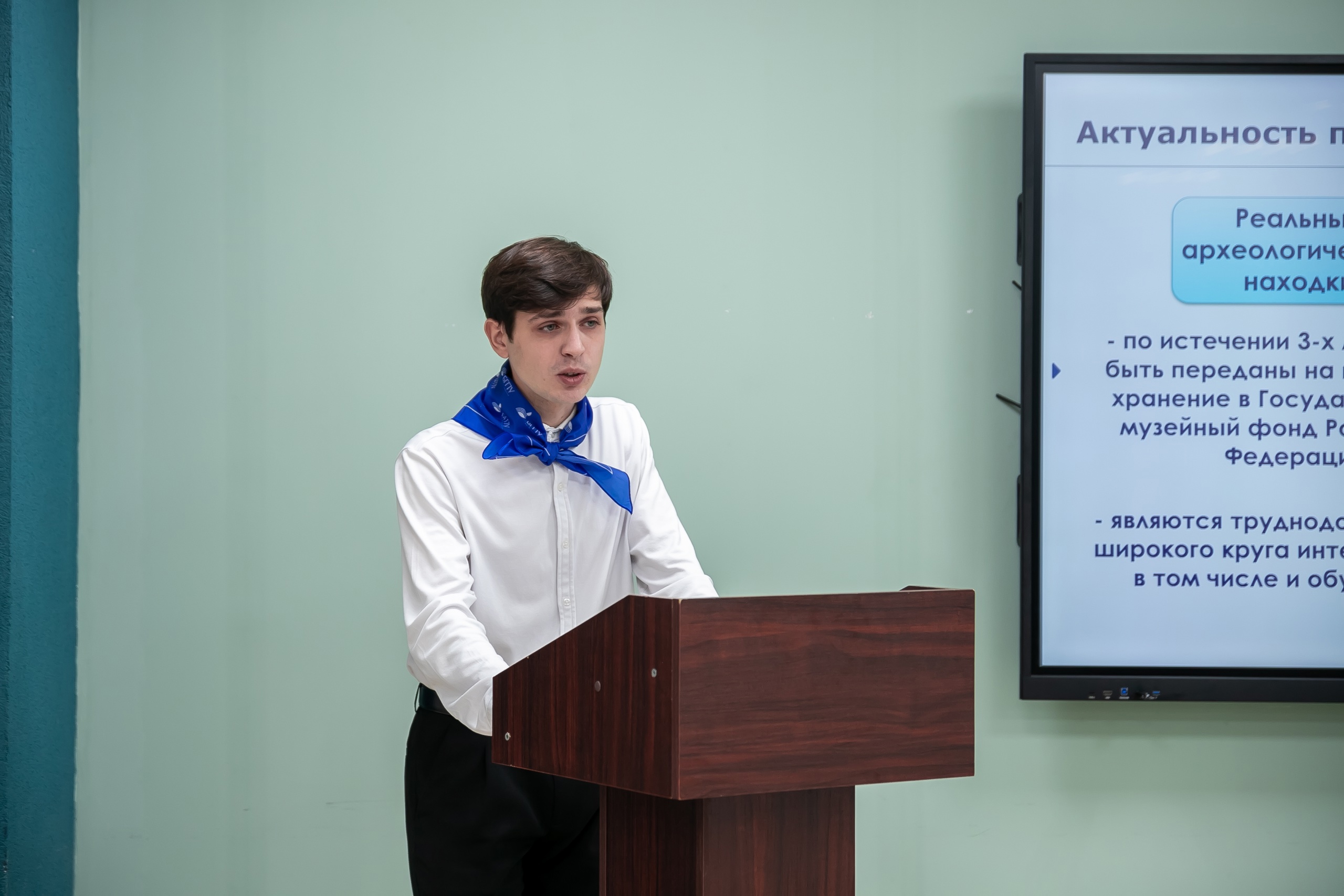 О виртуальном музее «Археология будущего» рассказал магистрант ИИПСГО Глеб Луц. Он подчеркнул, что создание виртуальных копий артефактов, найденных студентами во время археологической практики, значительно помогает обучению будущих историков. А использование VR-технологий вызывает большой интерес у будущих абитуриентов. Глеб предложил расширять коллекцию виртуального музея с помощью других образовательных и научных организаций, а также широко создавать VR-музеи в вузах и школах.