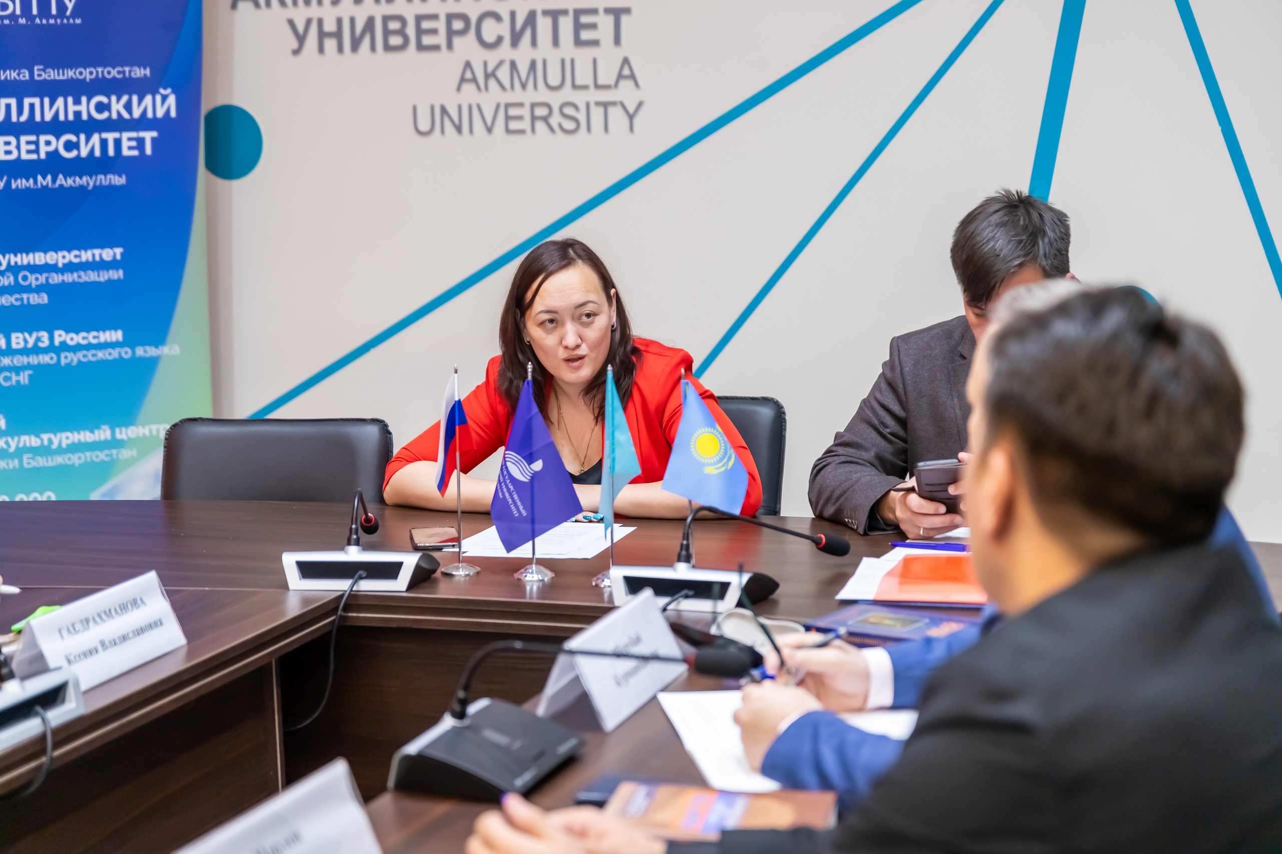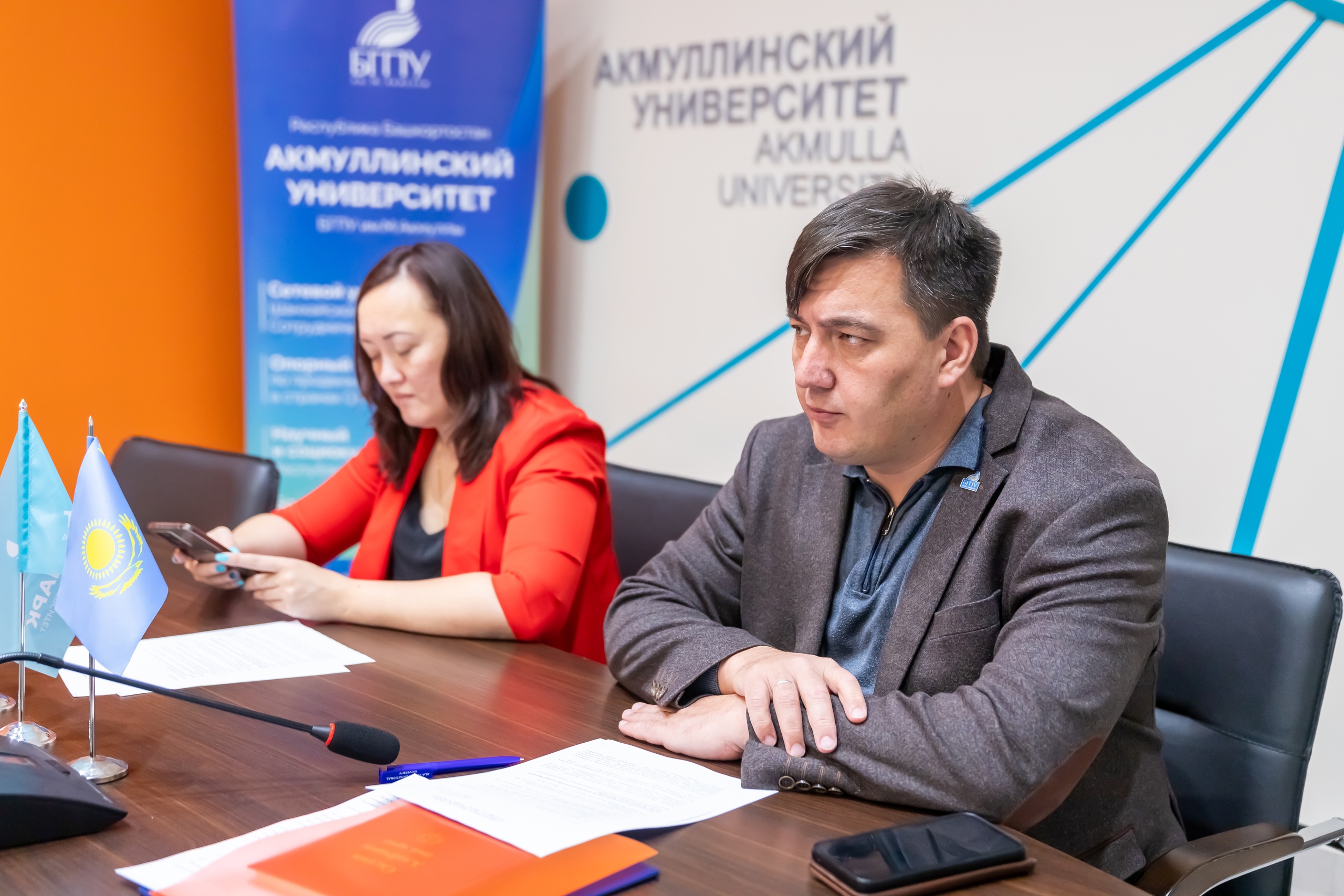 Проректор по молодежной политике и международным связям Радик Юлбаев отметил, что Акмуллинский университет активно сотрудничает со многими зарубежными вузами, в том числе из Казахстана, и рад наладить сотрудничество с новым партнером. Радик Зинатович рассказал гостям о  ключевых проектах, реализуемых вузом в сфере международного сотрудничества, в частности в Киргизской Республике, и предложил наладить взаимодействие в области академической мобильности студентов и преподавателей.