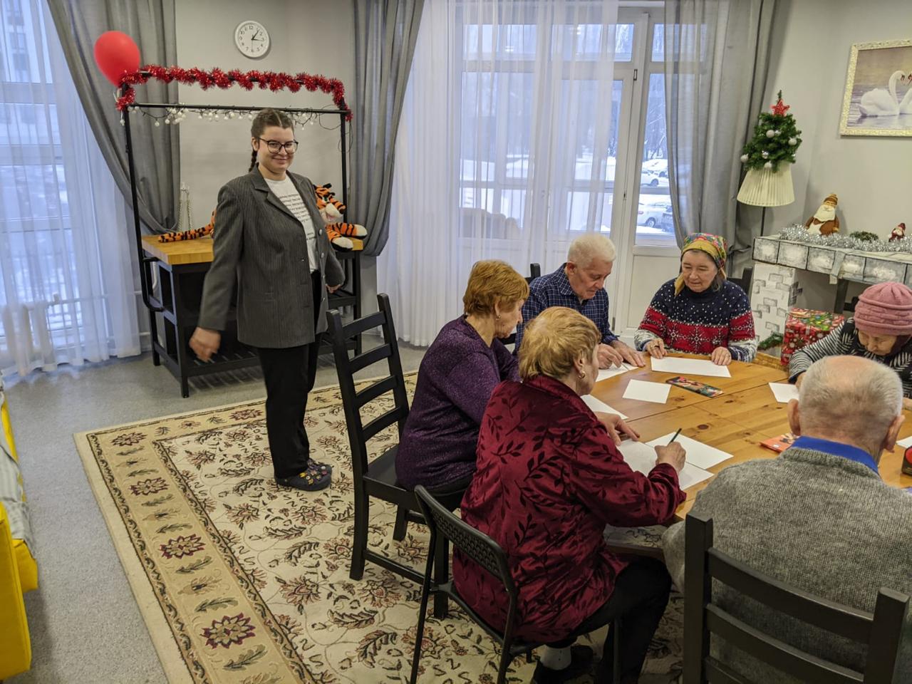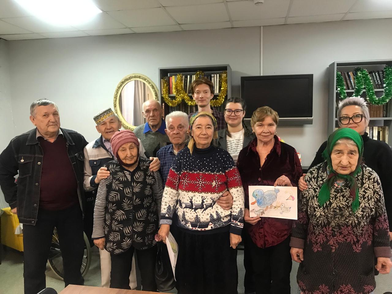 27 декабря студенты факультета психологии Иван Савостьянов, Авелина Шабаева и магистрант Алиса Нугуманова организовали для подопечных социального учреждения праздничную программу с конкурсами и викторинами. Под руководством студентов пожилые люди создали фрактальные рисунки. Этот метод задействует глубинные механизмы подсознания и мелкую моторику, позволяя улучшить эмоциональное, психологическое и физическое состояние человека. Также молодые люди вручили пожилым людям новогодние сувениры.