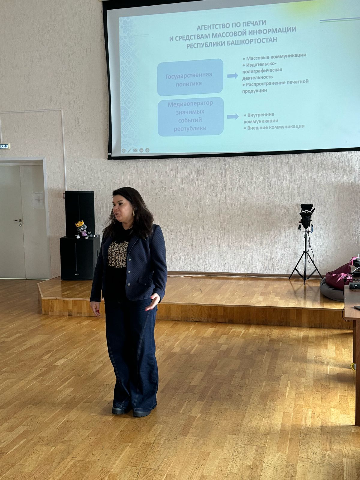 Первый заместитель руководителя Агентства по печати и СМИ Республики Башкортостан Елена Арямнова встретилась с участниками Школы студенческого актива «Акмуллинские лидеры» студенческого медиацентра bsputeam БГПУ им. М. Акмуллы.
