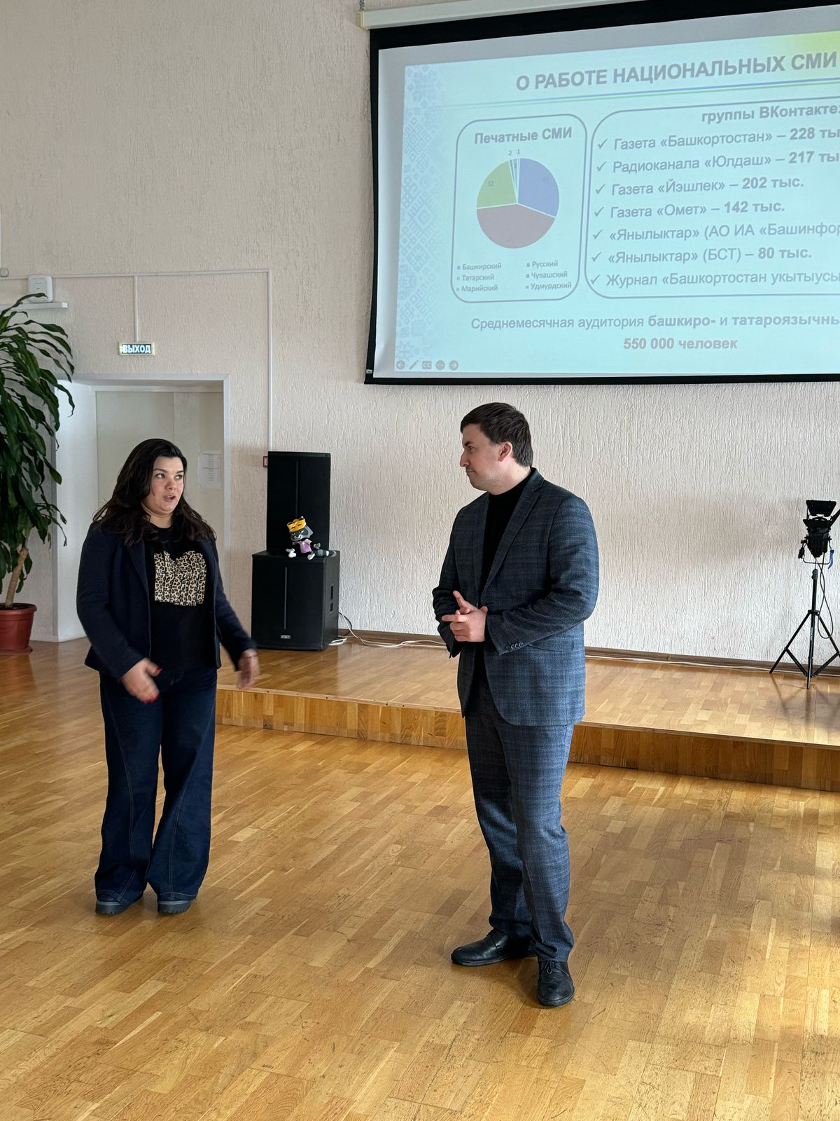 Также медиадиректор Издательского дома «Республика Башкортостан» Ринат Шайбаков представил возможности трудоустройства в отрасли и сотрудничества с молодыми специалистами в республиканских и районных СМИ. Спикеры поделились личными историями карьеры, выбора профессии, полезными советами, а также своими кейсами. Встречу организовало Управление по информационной политики.