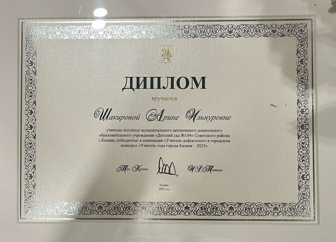 Магистрантка кафедры специальной педагогики и психологии Арина Шакирова стала победителем в номинации «Учитель-дефектолог» городского конкурса профессионального мастерства «Учитель года города Казани – 2025»!