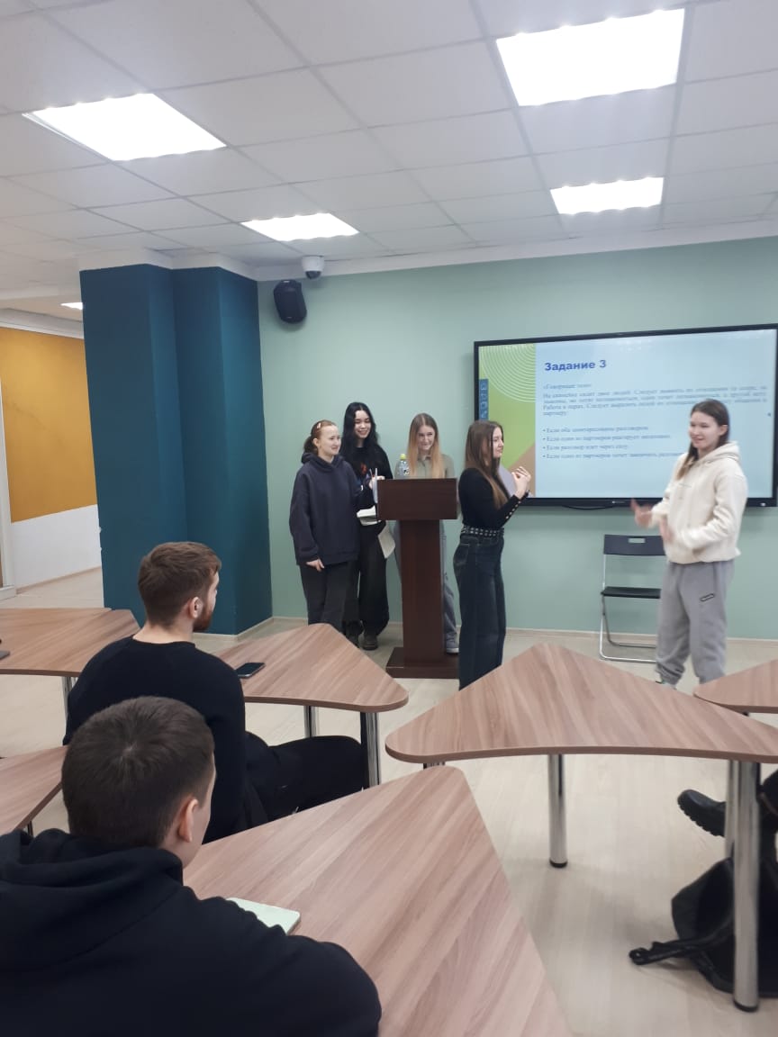 Аделия Файзуллина помогла студентам освоить навыки активного слушания. Мария Труш поделилась способами снижения эмоционального напряжения в спорных ситуациях, Зарина Хайрутдинова познакомила с механизмами психологического воздействия на людей.