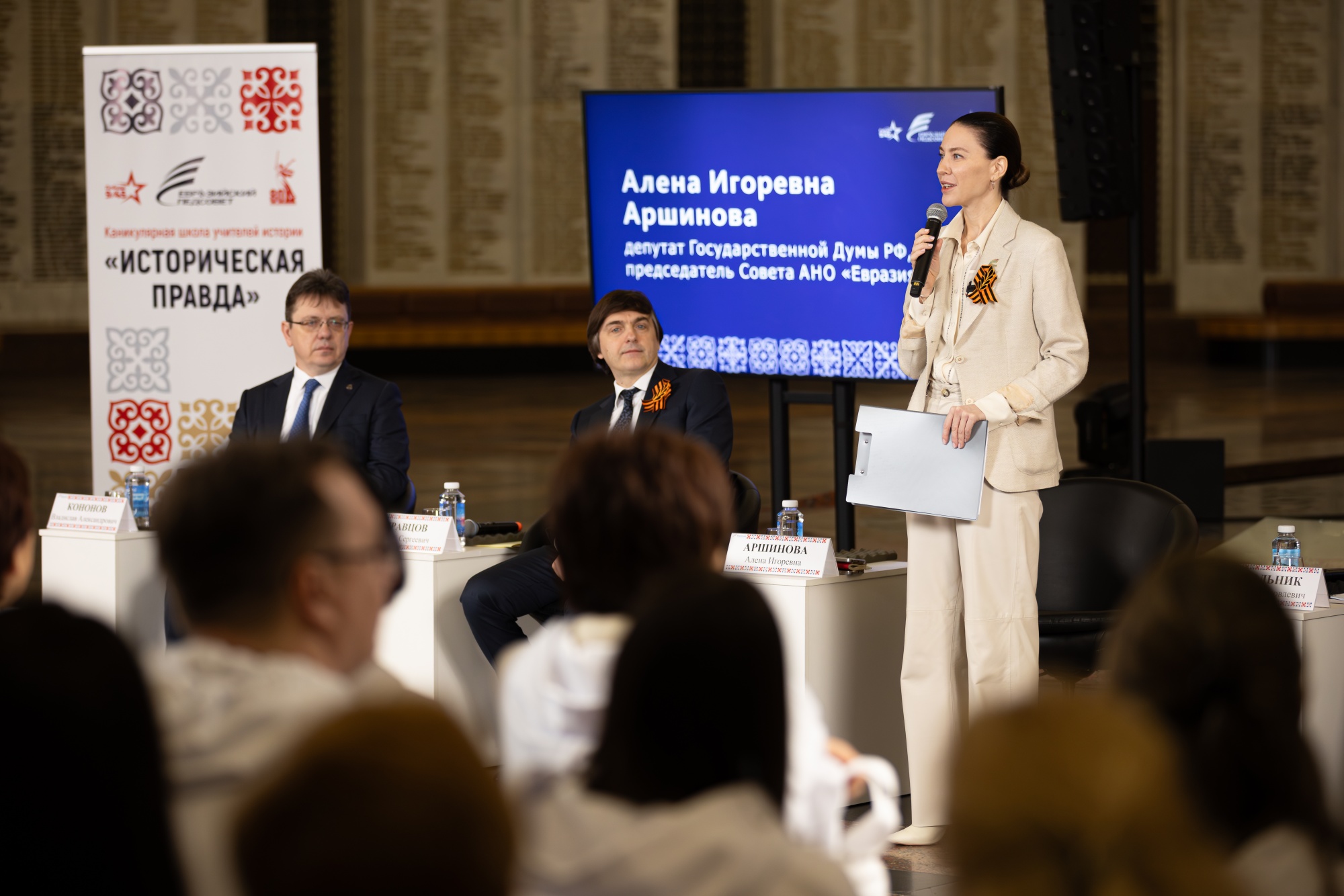 В Москве в Музее Победы 27 марта состоялась церемония открытия Евразийской каникулярной школы «Историческая правда» для учителей истории, организованной АНО «Евразия». В ней приняли участие министр просвещения России Сергей Кравцов, первый заместитель председателя Комитета Государственной Думы по просвещению, председатель Совета АНО «Евразия» Алена Аршинова и педагоги.