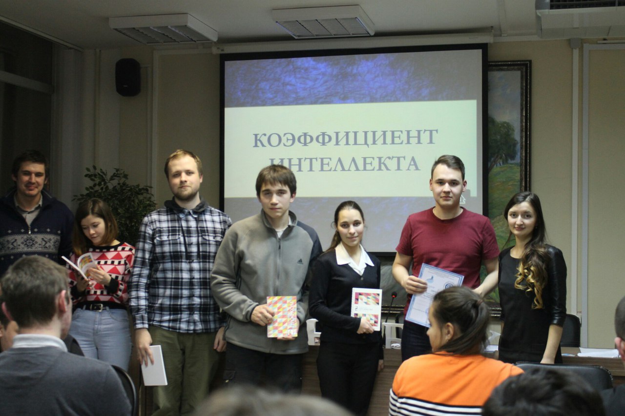 5 декабря 2016 года в БГПУ им. М. Акмуллы состоялась межвузовская познавательная игра "Коэффициент интеллекта", в которой приняли участие 8 команд ведущих ВУЗов нашего города: БГМУ "Протез мозга", РЭУ им. Плеханова "Плехановцы", БГПУ им. М. Акмуллы: "Великолепная шестерка" (Социально-гуманитарный факультет), "Вассермане" (Институт исторического и правового образования), БГАУ "Пес Да Винчи", УГНТУ "Посквончим!", БашГУ "Солдаты неудачи", БАГСУ "БЭМИС Академии". Большинство из них участвуют в игре не в первый раз, и поэтому ответы на вопросы находились довольно быстро. Для кого-то интеллектуальная игра стала первой, и они старательно двигались к победе.