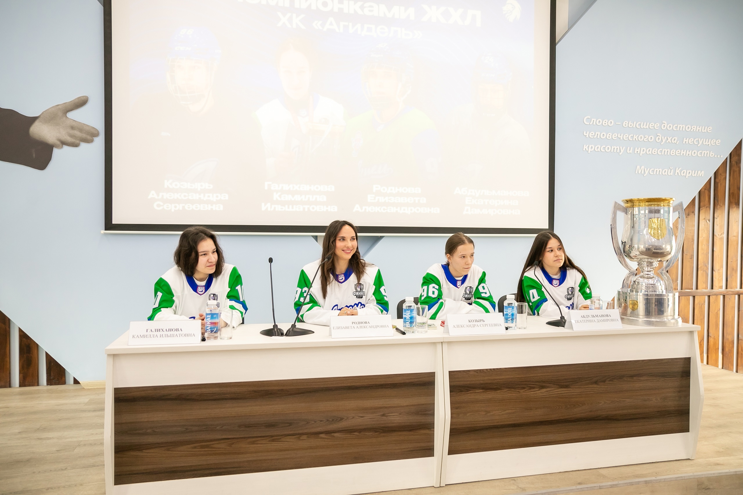 На встречу со студентами Башкирского педуниверситета девушки принесли кубок ЖХЛ и свои медали. Они подробно ответили на все вопросы студентов, рассказали о ходе тренировок и о спортивной жизни, о том, как начинали свой путь в спорте.