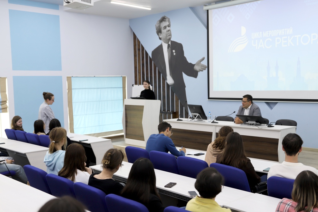 20 мая ректор Акмуллинского университета Салават Сагитов провел традиционный «Час ректора» для студентов Института филологического образования и межкультурных коммуникаций. Встреча прошла в аудитории имени Мустая Карима, народного поэта Башкортостана, первого почетного профессора Акмуллинского университета.