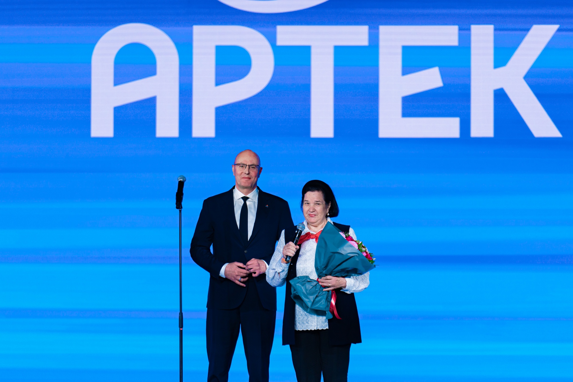 Министр просвещения РФ Сергей Кравцов поднялся на сцену вместе с Валентиной Николаевной Черкасовой. Ребенком она пережила блокаду Ленинграда, а после войны, в 1949 году, отдыхала в «Артеке». Вместе они исполнили песню «Артековская клятва», написанную журналистами «Пионерской правды» Владимиром Богановым и Анатолием Ануфриевым.
