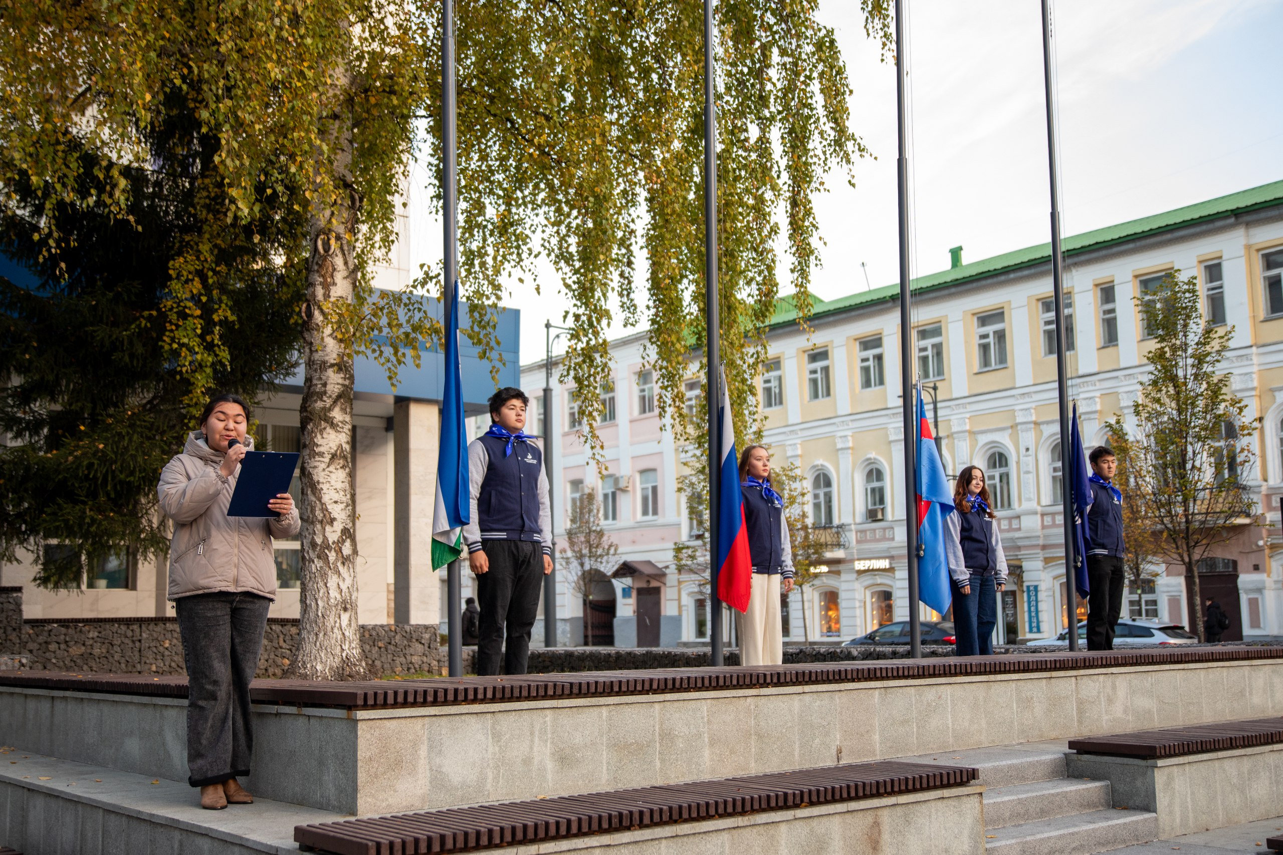 Студенты ЕГФ подняли флаги на площади перед Акмуллинским университетом