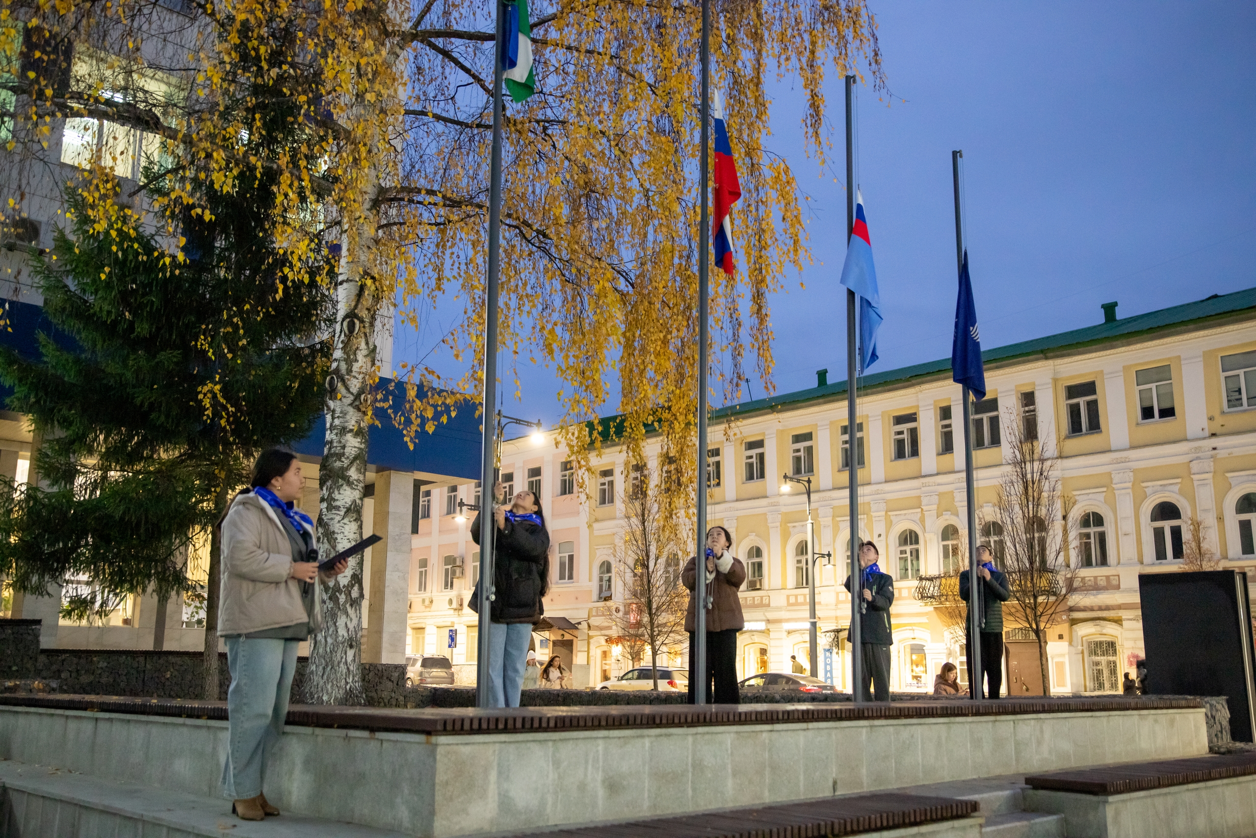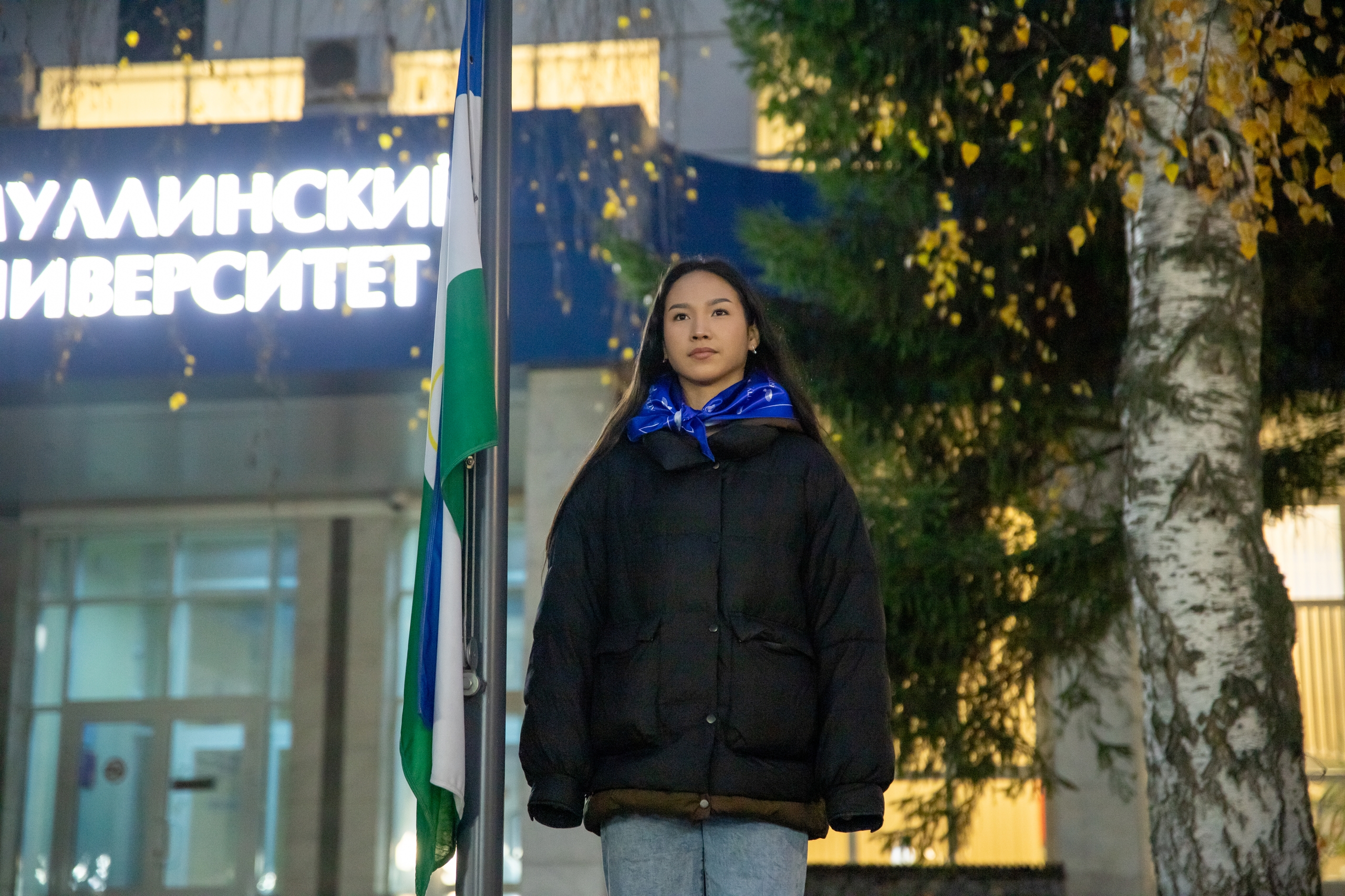 Студенты факультета башкирской филологии подняли флаги перед БГПУ им. М. Акмуллы