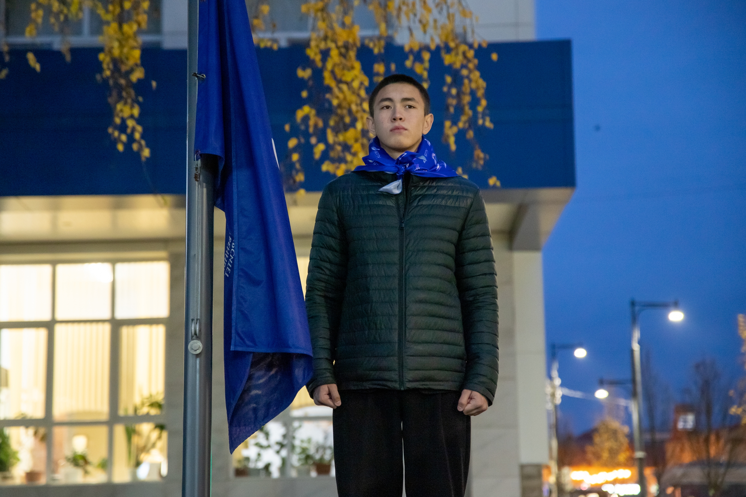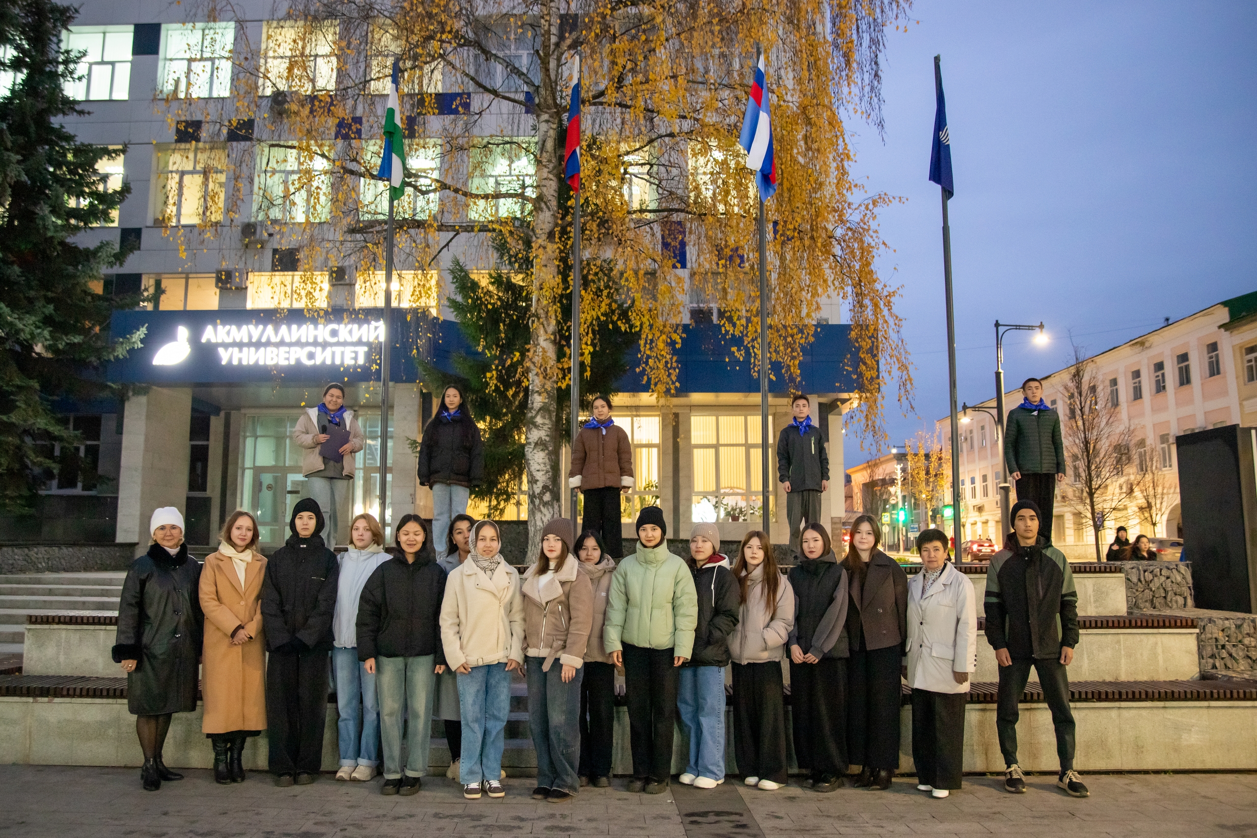 27 октября в Акмуллинском университете состоялась еженедельная торжественная церемония поднятия государственных флагов Российской Федерации, Республики Башкортостан, флагов Министерства просвещения России и Акмуллинского университета. В ней приняли участие студенты и преподаватели факультета башкирской филологии.