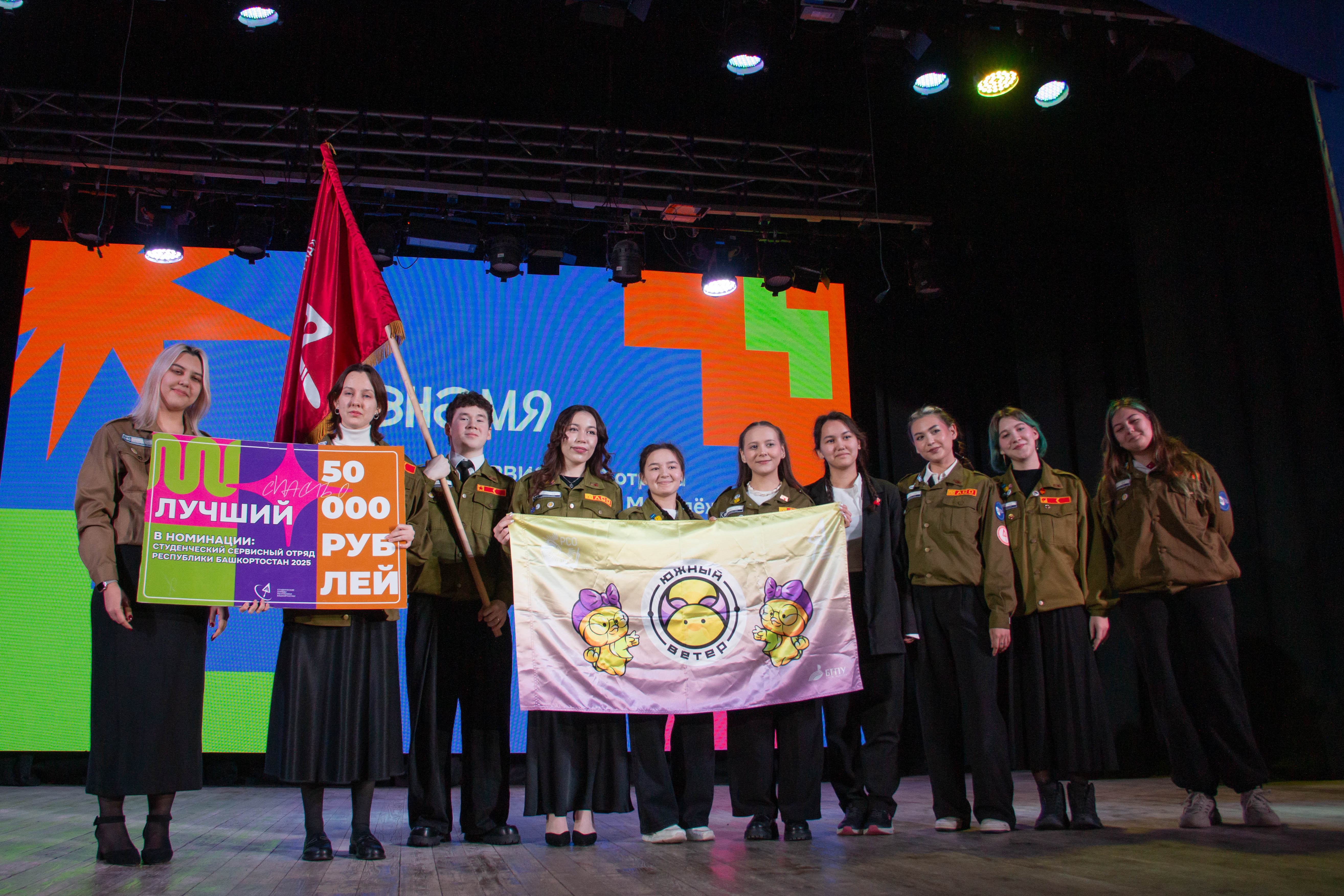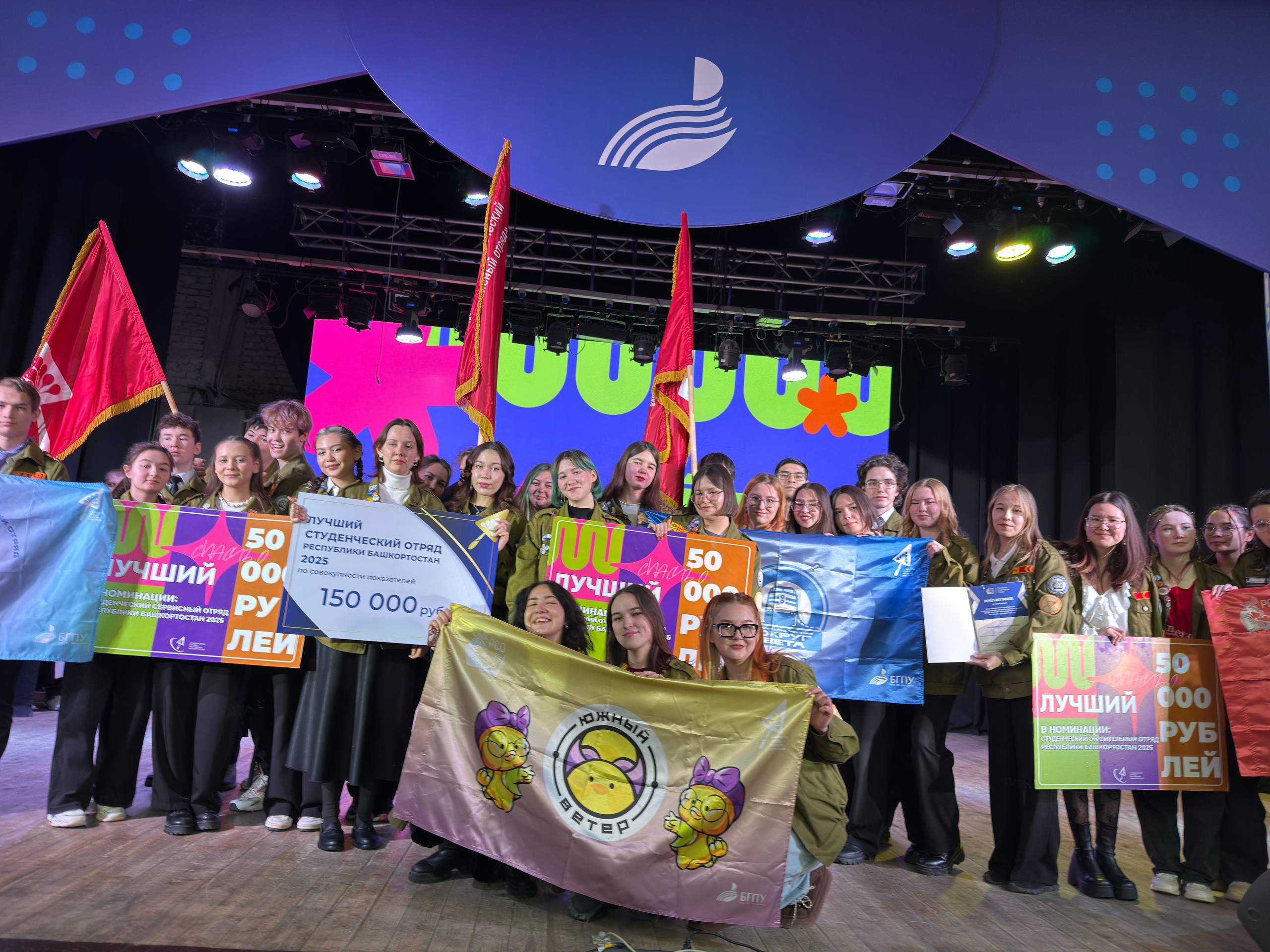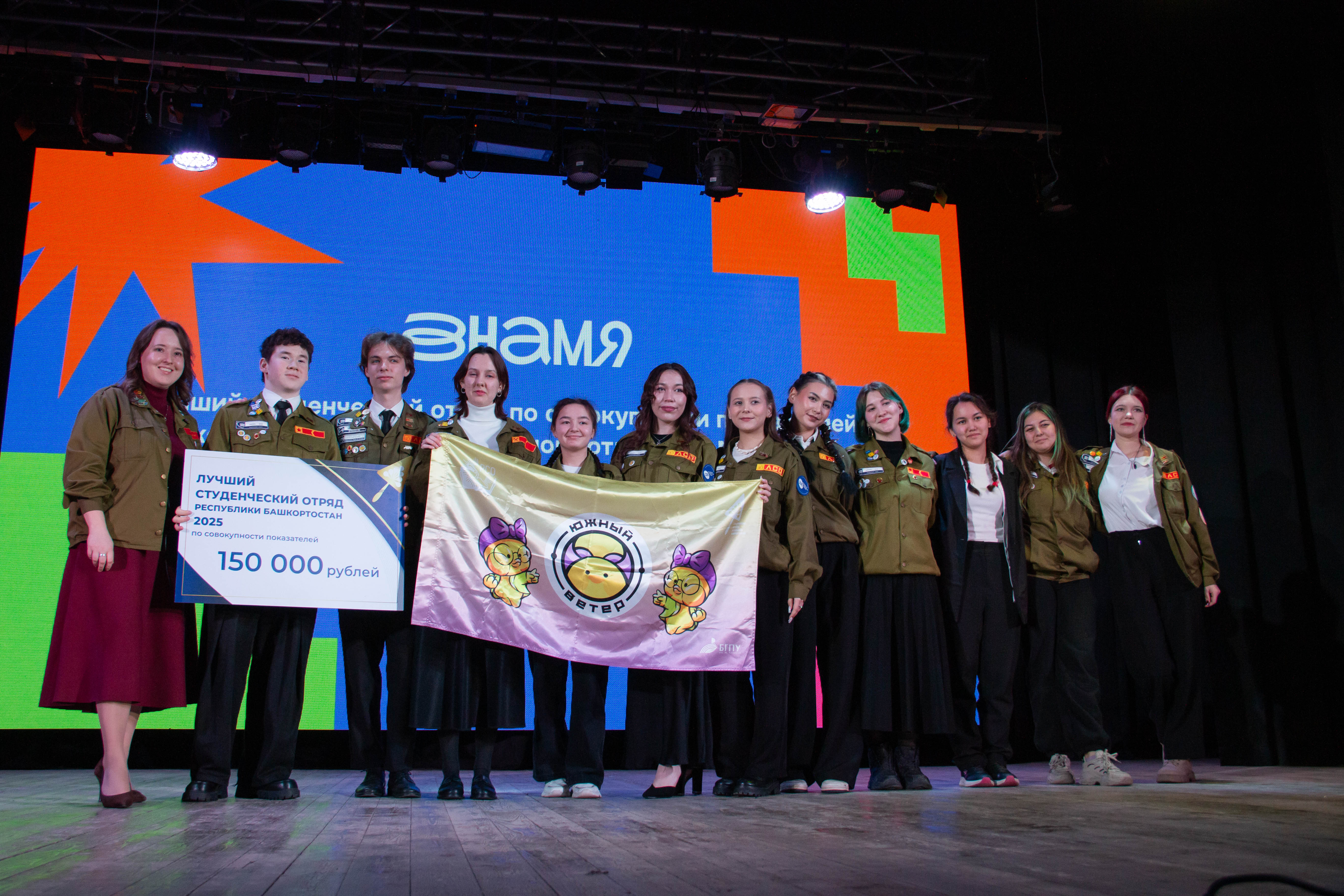 По итогам года сразу три студенческих отряда БГПУ им. Акмуллы были удостоены знамен лучших отрядов по своим направлениям работы. Лучшим студенческим сервисным отрядом был признан отряд «Южный ветер», звание лучшего студенческого отряда проводников получил отряд «Вокруг света», а знамя лучшего студенческого строительного отряда завоевал отряд «Луна».