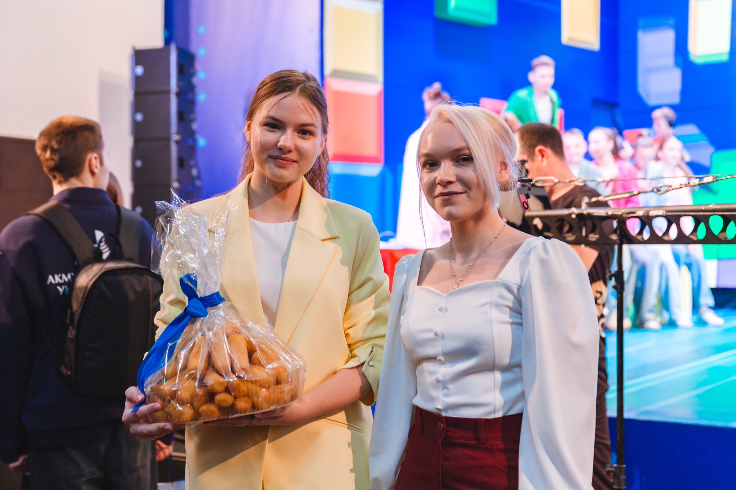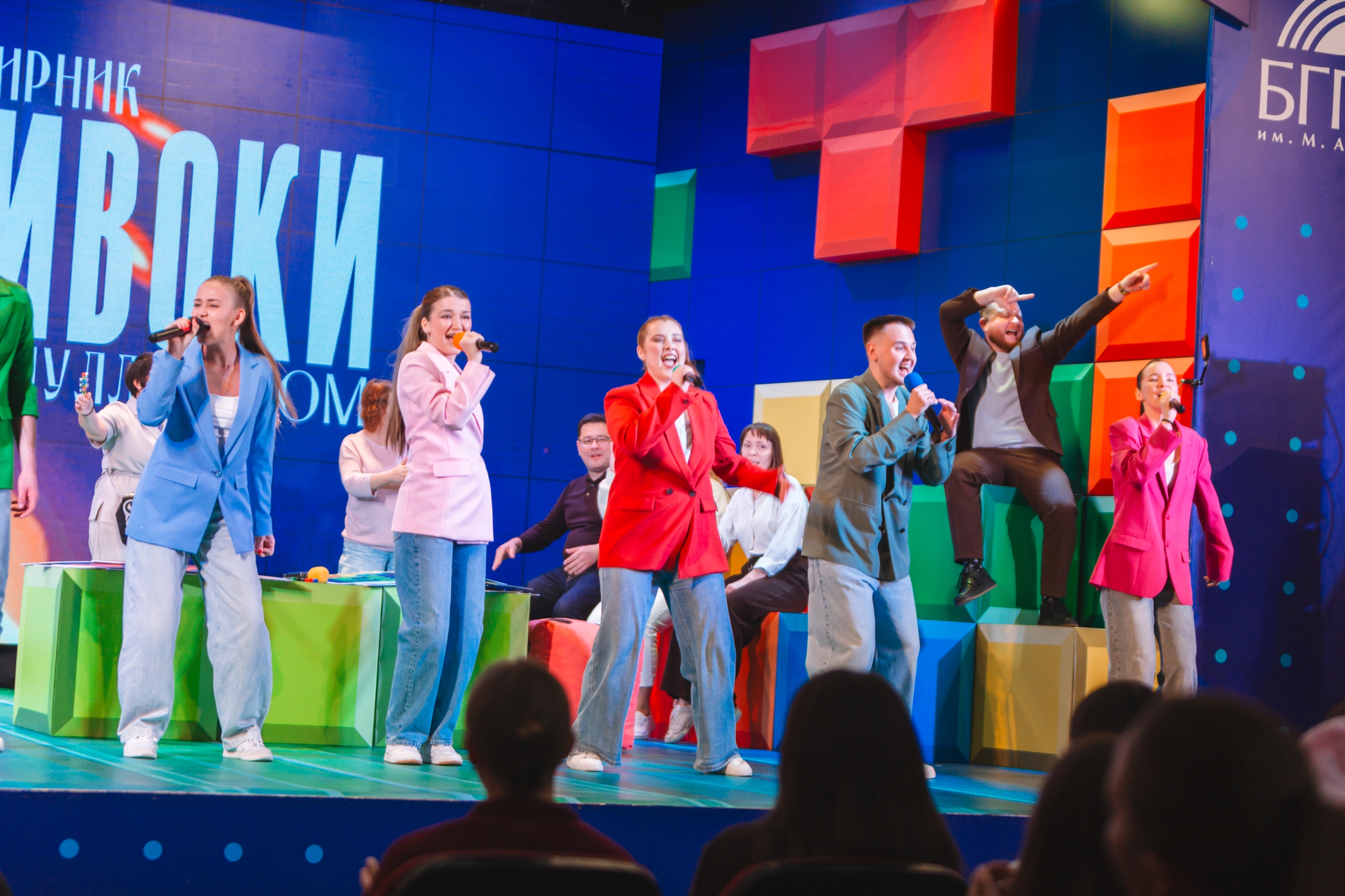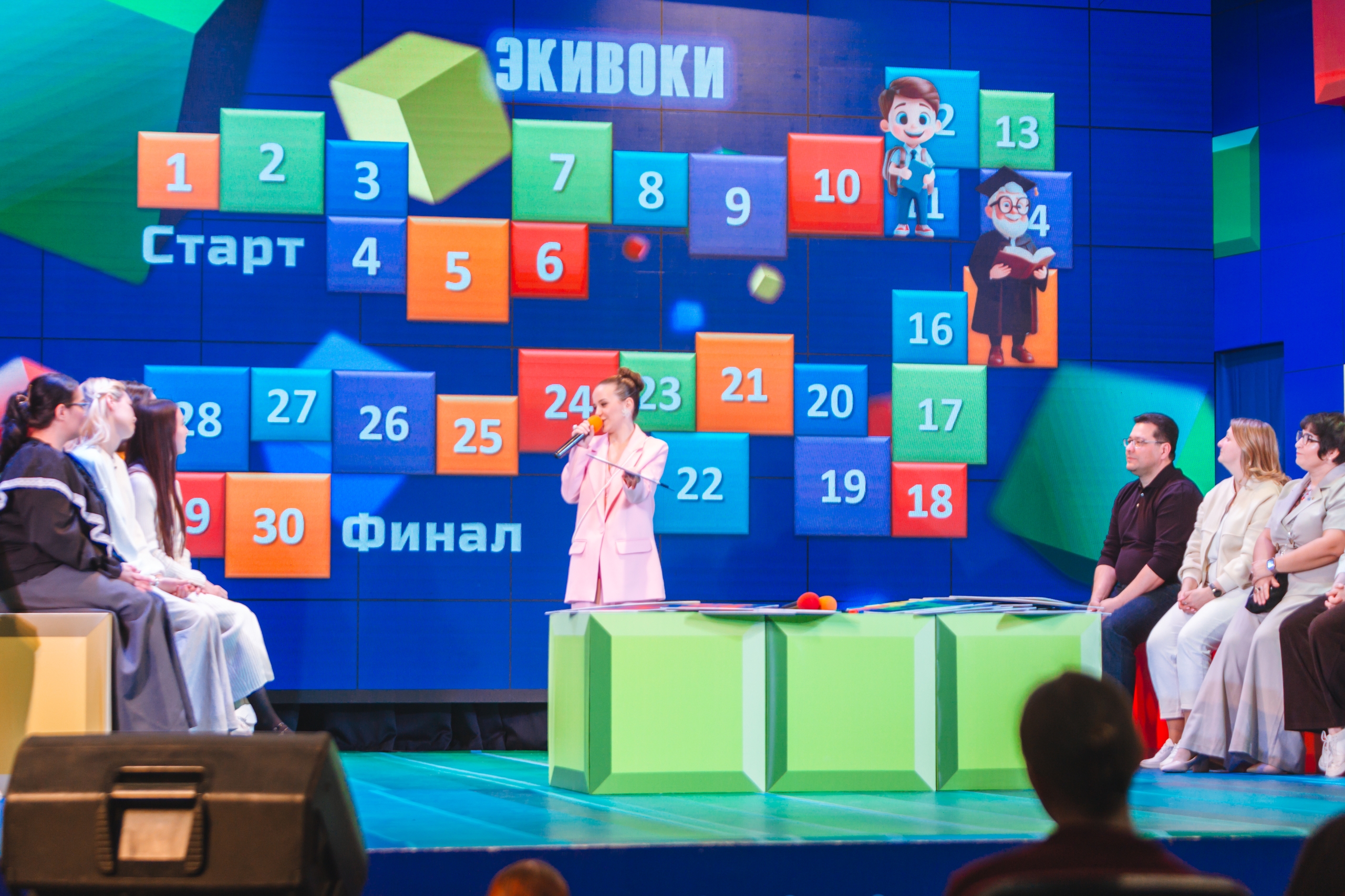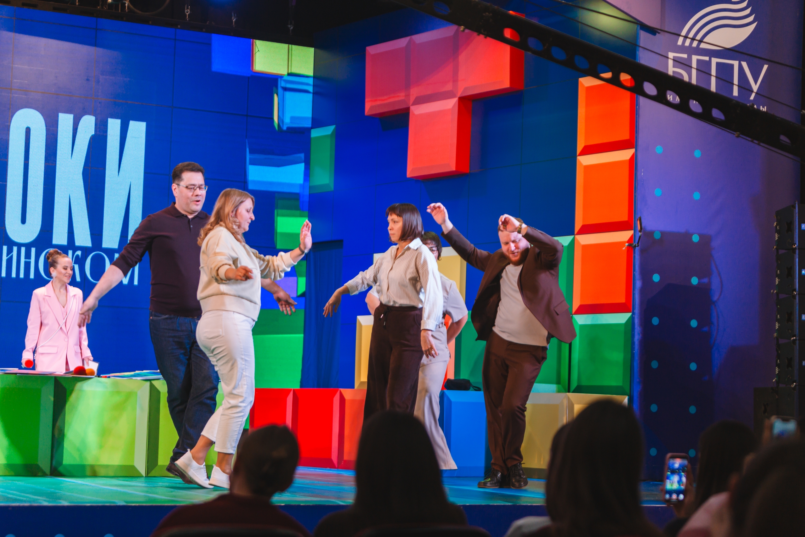 После торжественных слов на сцене концертного зала встретились команды студентов и преподавателей.
