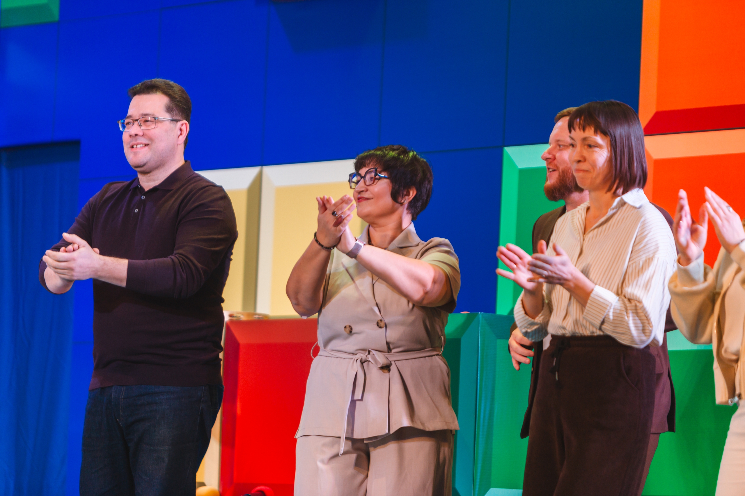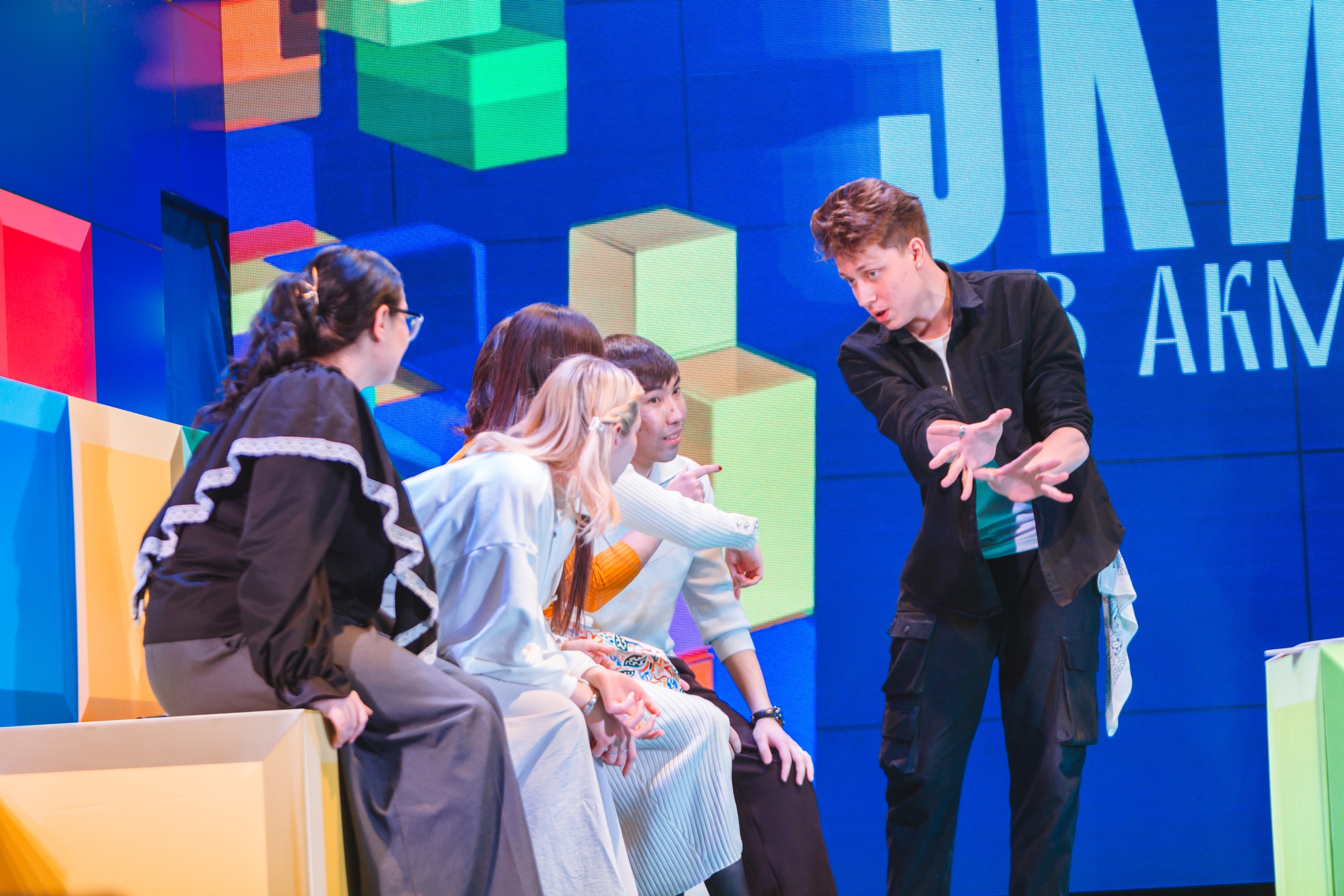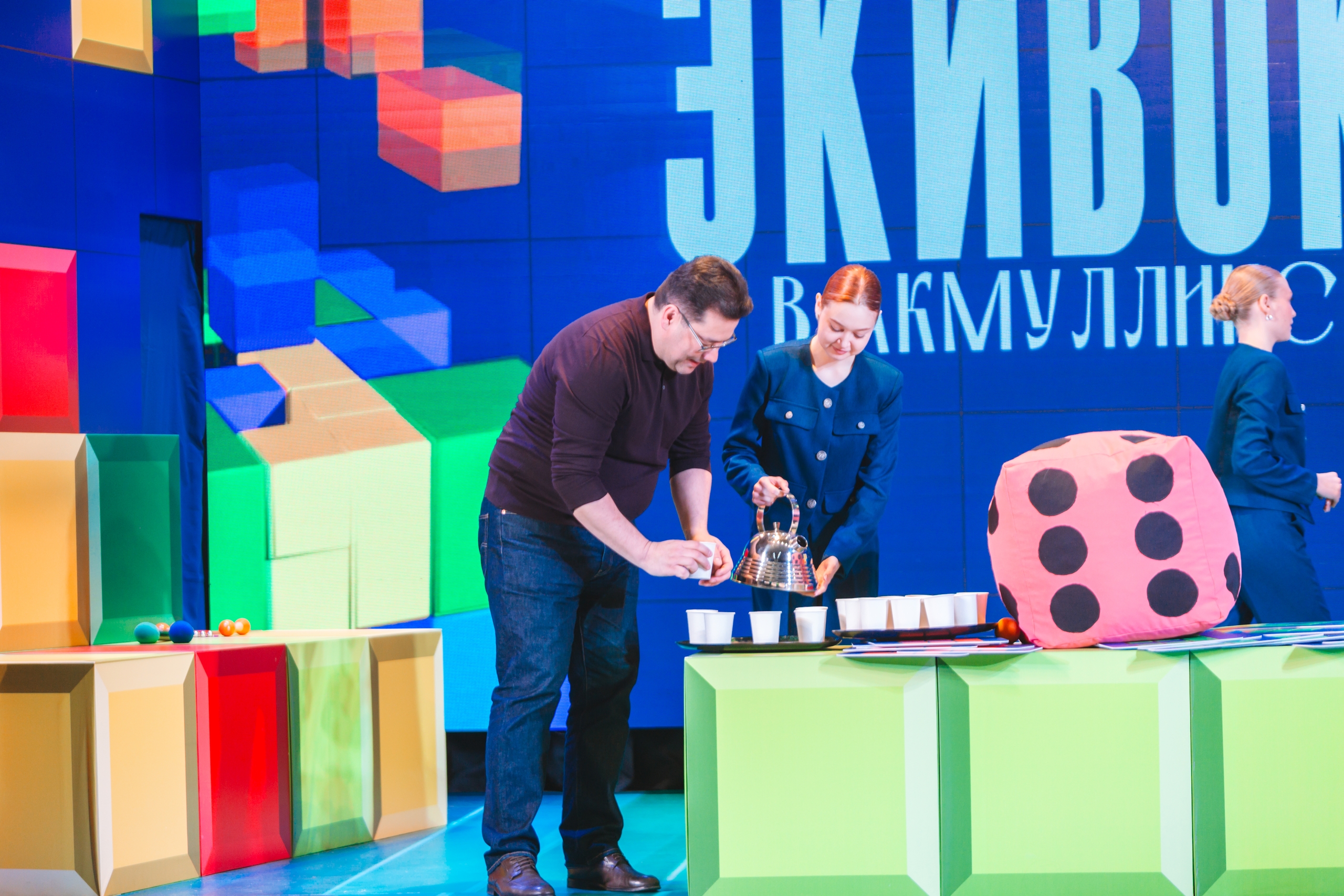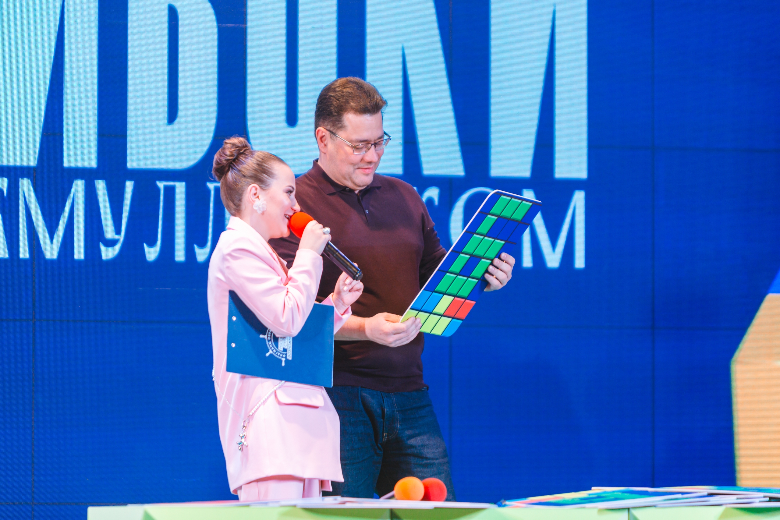 После торжественных слов на сцене концертного зала встретились команды студентов и преподавателей.