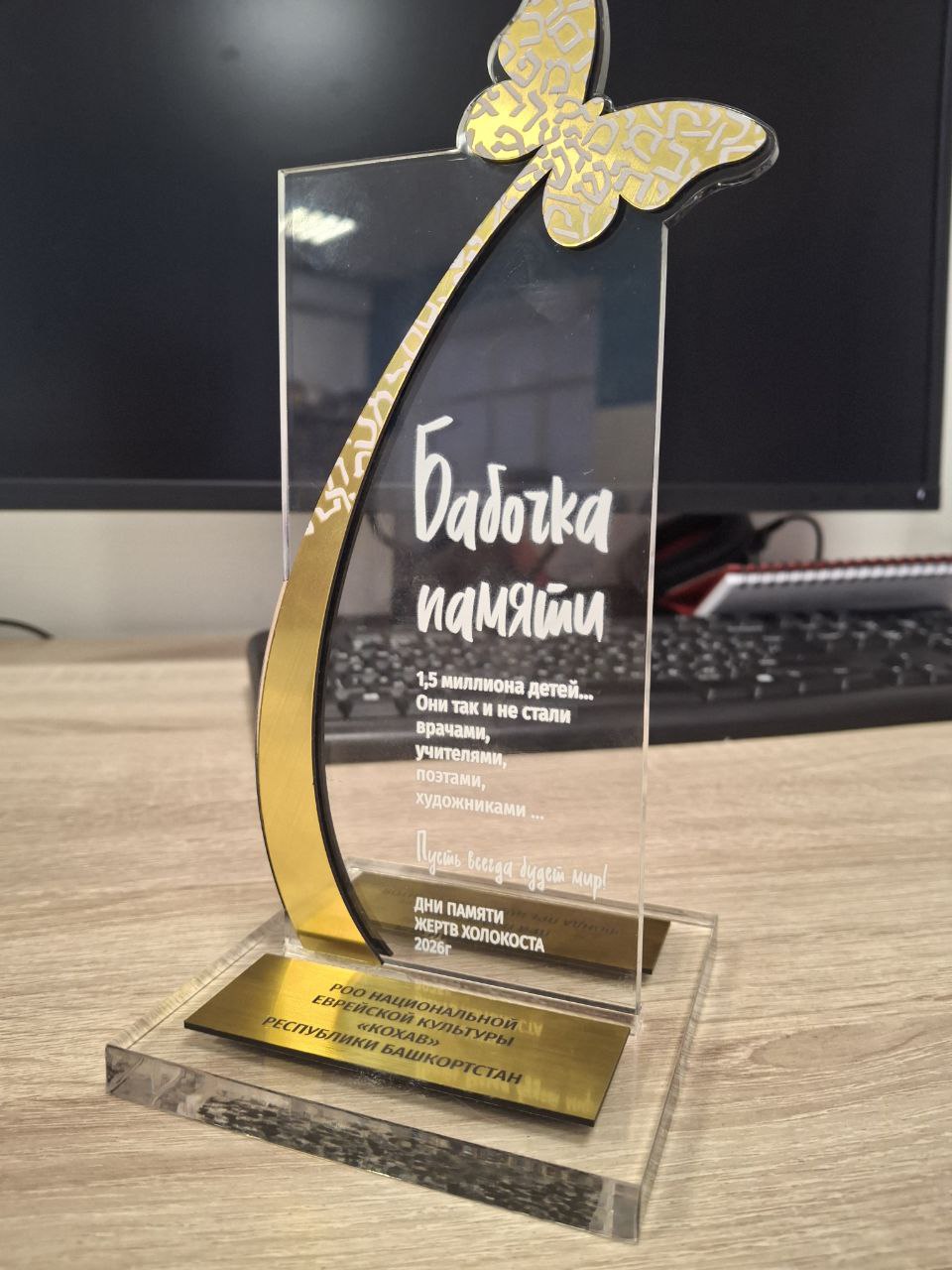 В Большом зале ГКЗ «Башкортостан» 27 января состоялся мемориальный концерт «Свеча памяти Холокоста» с вручением премий «Бабочка памяти» Еврейской общины Республики Башкортостан. Это мероприятие завершило «Неделю памяти» — цикл просветительских и культурных акций, посвященных Международному дню памяти жертв Холокоста.