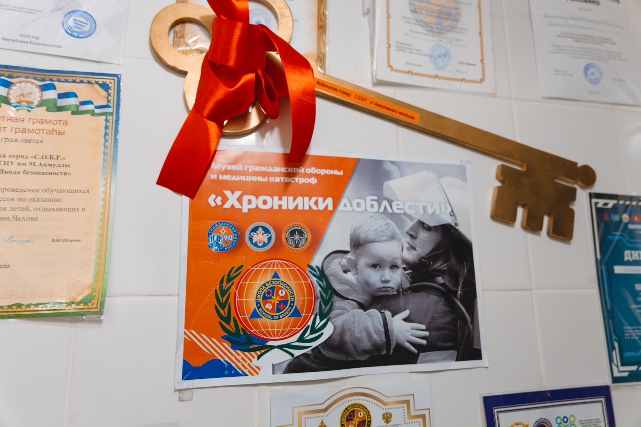 Музей гражданской обороны и медицины катастроф «Хроники доблести» расположился в стенах колледжа БГПУ им. М. Акмуллы. Иммерсивное пространство создано активистами «Мобильного отряда «С.О.Б.Р.» Акмуллинского колледжа при поддержке Главного управление МЧС России по Республике Башкортостан.