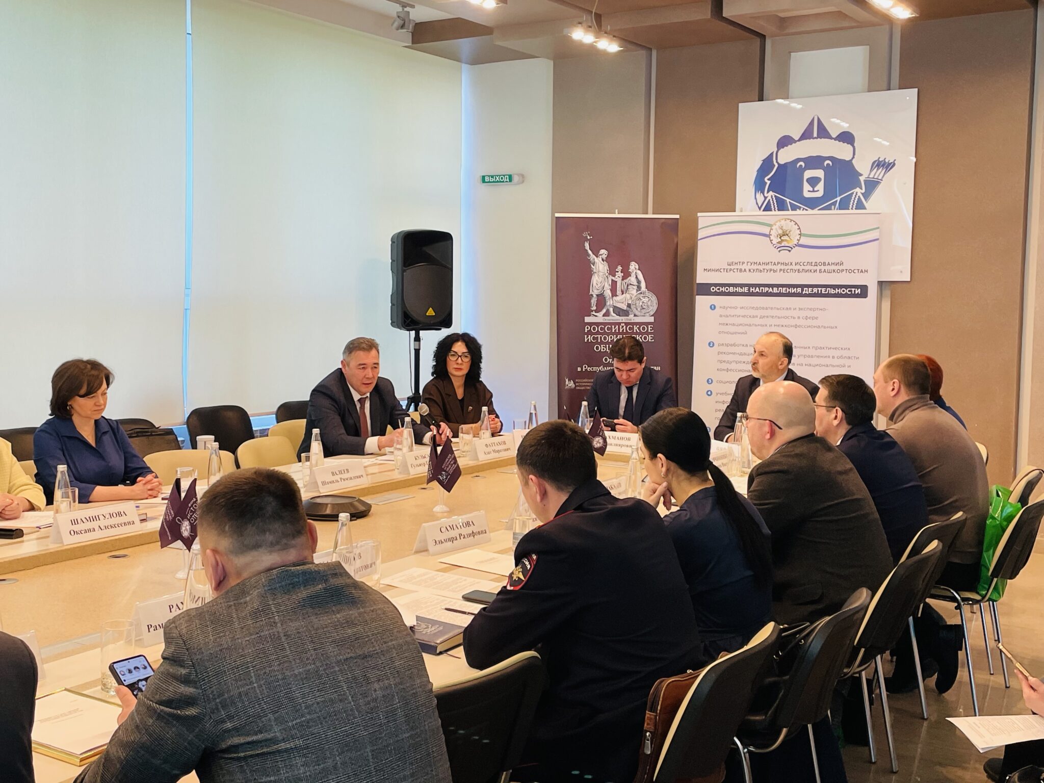 В своем приветствии председатель Правления Российского исторического общества, исполнительный директор фонда «История Отечества» Руслан Гагкуев подчеркнул, что единение народов России и сегодня служит нам опорой в защите суверенитета общей родины. Директор Центра гуманитарных исследований Минкультуры РБ, председатель Совета отделения Российского исторического общества в Республике Башкортостан Марат Марданов представил проект Концепции государственной национальной политики в Республике Башкортостан.