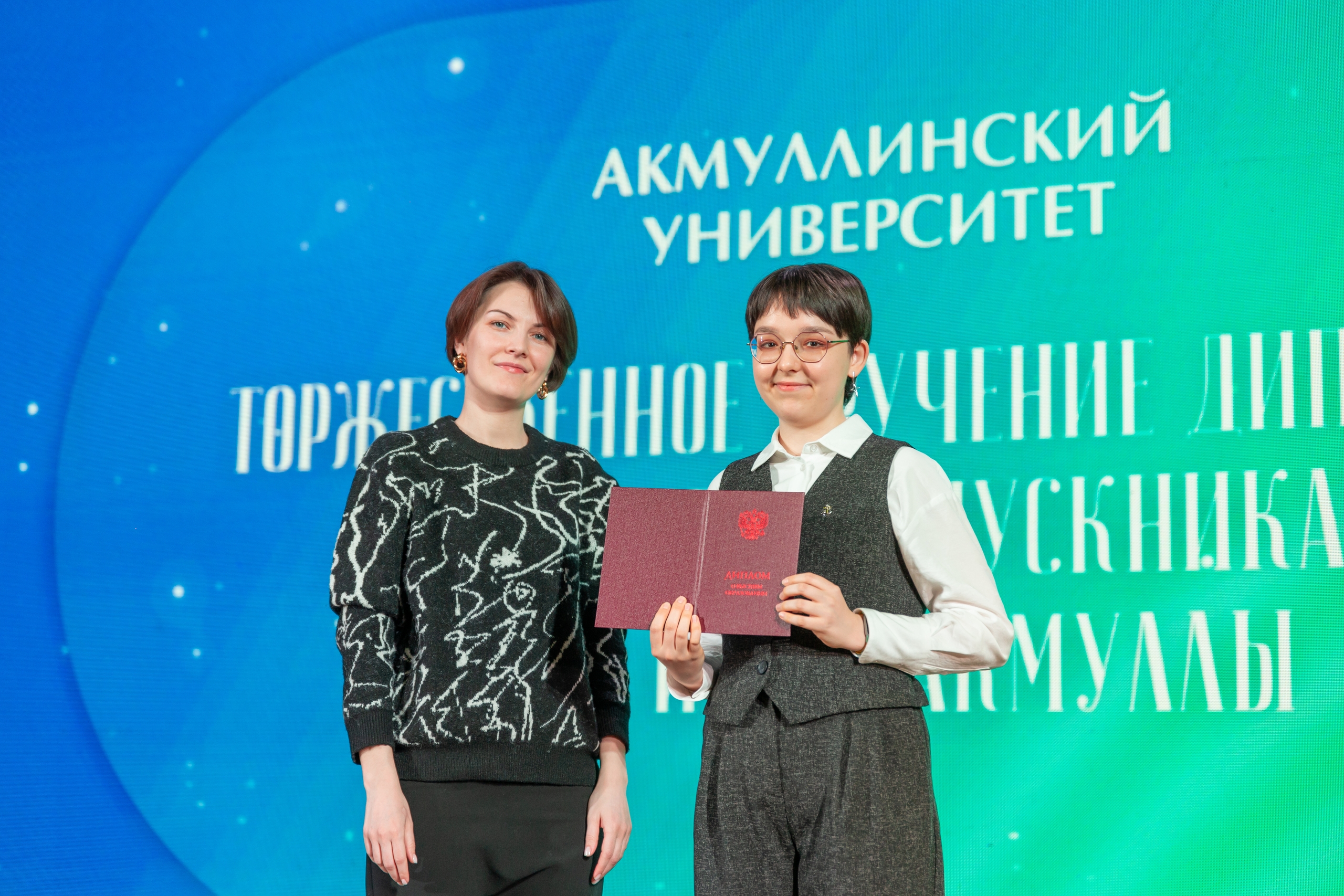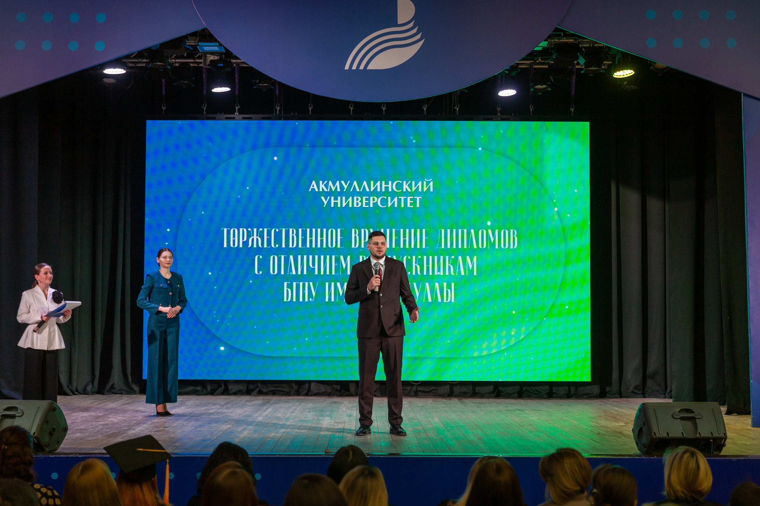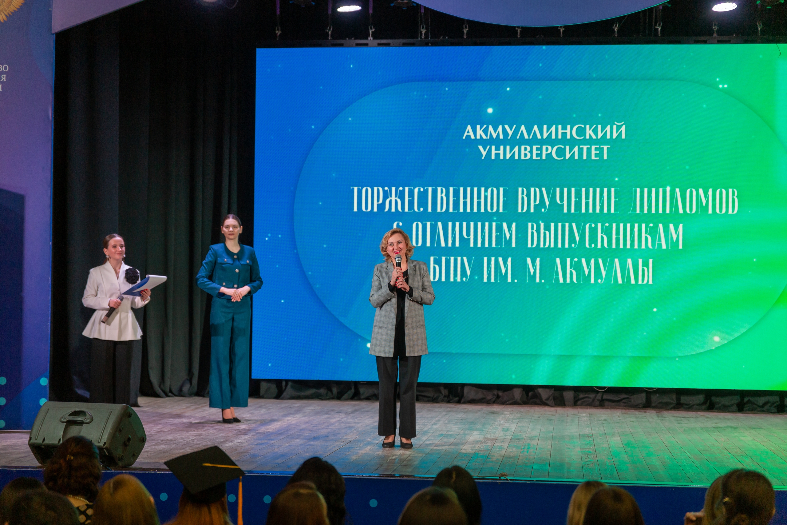 С ответным словом выступила выпускница естественно-географического факультета Екатерина Надеждина: «Быть выпускником Акмуллинского университета – значит, быть частью огромной профессиональной семьи. И для нас это огромная честь и очень большая ответственность. Хочется выразить искреннюю благодарность нашим преподавателям, которые день за днём и шаг за шагом вели нас к этому знаменательному событию. Мы желаем, чтобы к вам приходили только лучшие студенты, а вы их делали ещё лучше. Ведь на нашем примере это получилось отлично! Огромное вам спасибо за знания, которые вы нам дали, и низкий вам поклон, уважаемые педагоги».