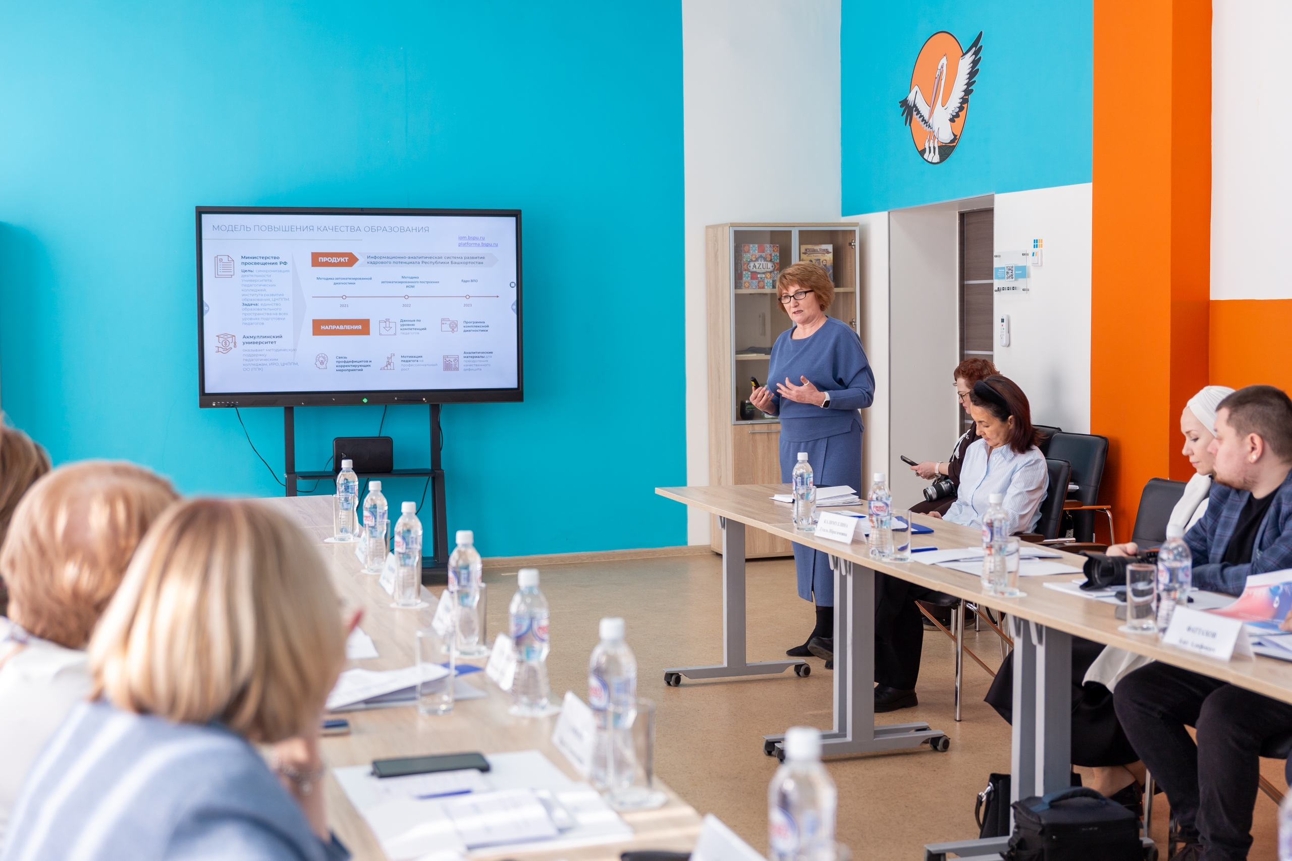 За круглым столом обсуждались вопросы, важные и общие для систем образования обоих регионов. Директор Института непрерывного профессионального образования «Вектор развития» БГПУ им. М. Акмуллы Гузель Калимуллина представила коллегам информационно-аналитическую платформу диагностики профдефицитов педагогов, разработанную в университете, и рассказала, как она работает на развитие кадрового потенциала региона.  Разработками вуза по языковой и социокультурной адаптации детей из семей мигрантов поделилась Ксения Габдрахманова, проректор по учебно-методической работе.