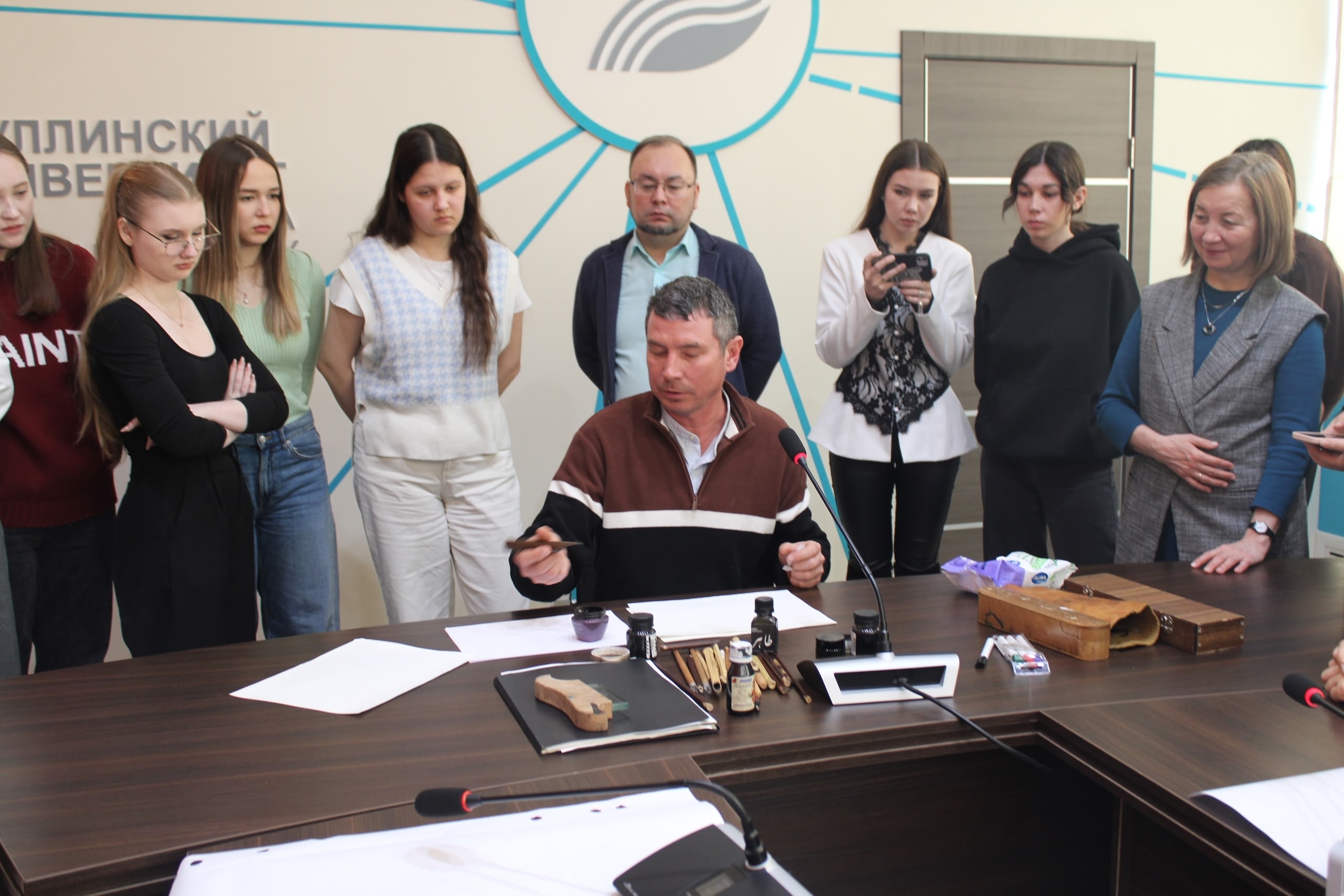 После официальной части праздник продолжил выпускник Акмуллинского университета, каллиграф Айдар Гареев, который провёл творческий мастер-класс по каллиграфии, где каждый участник встречи смог вывести свой первый иероглиф.