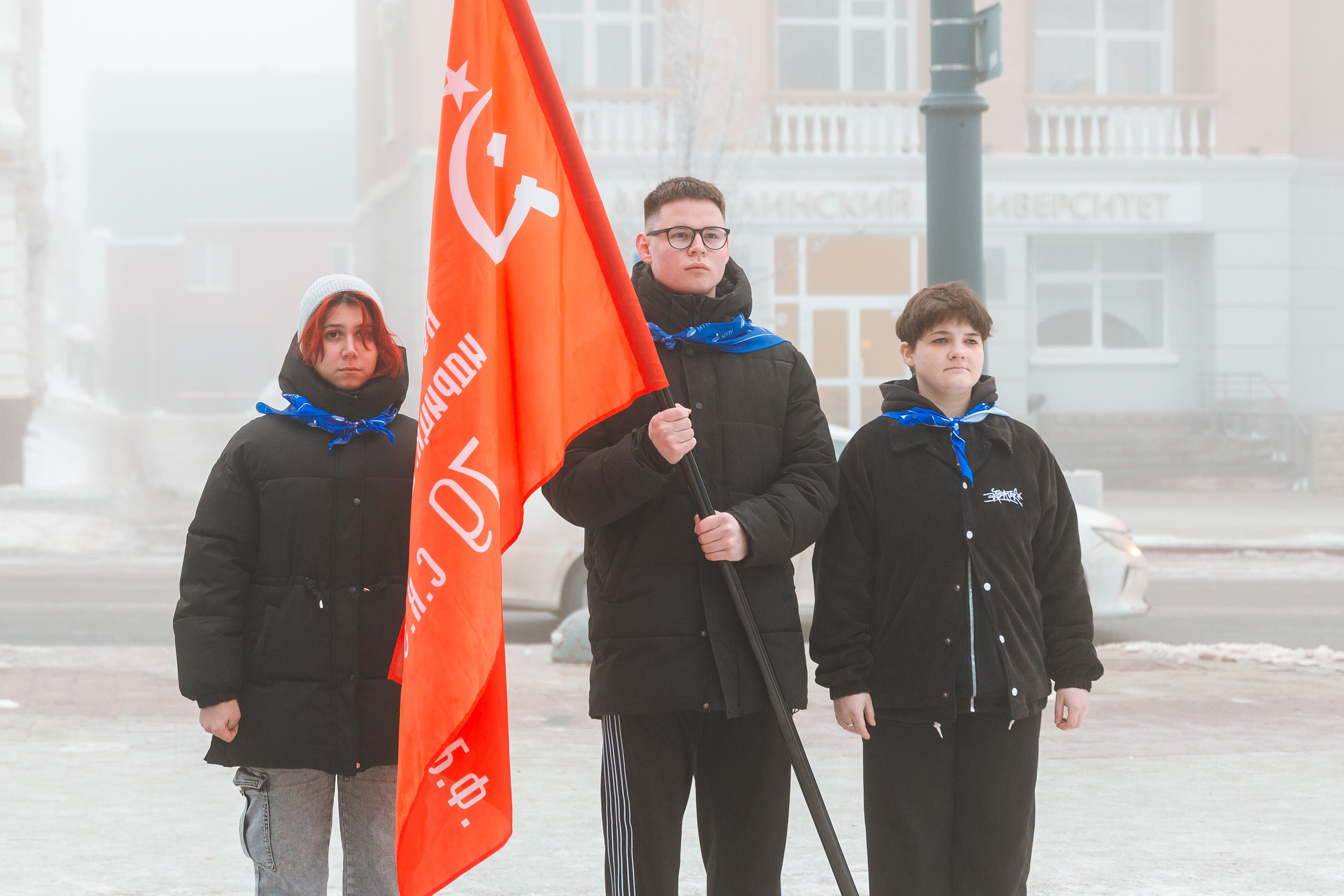 Студенты ИИПСГО подняли флаги перед Акмуллинским университетом