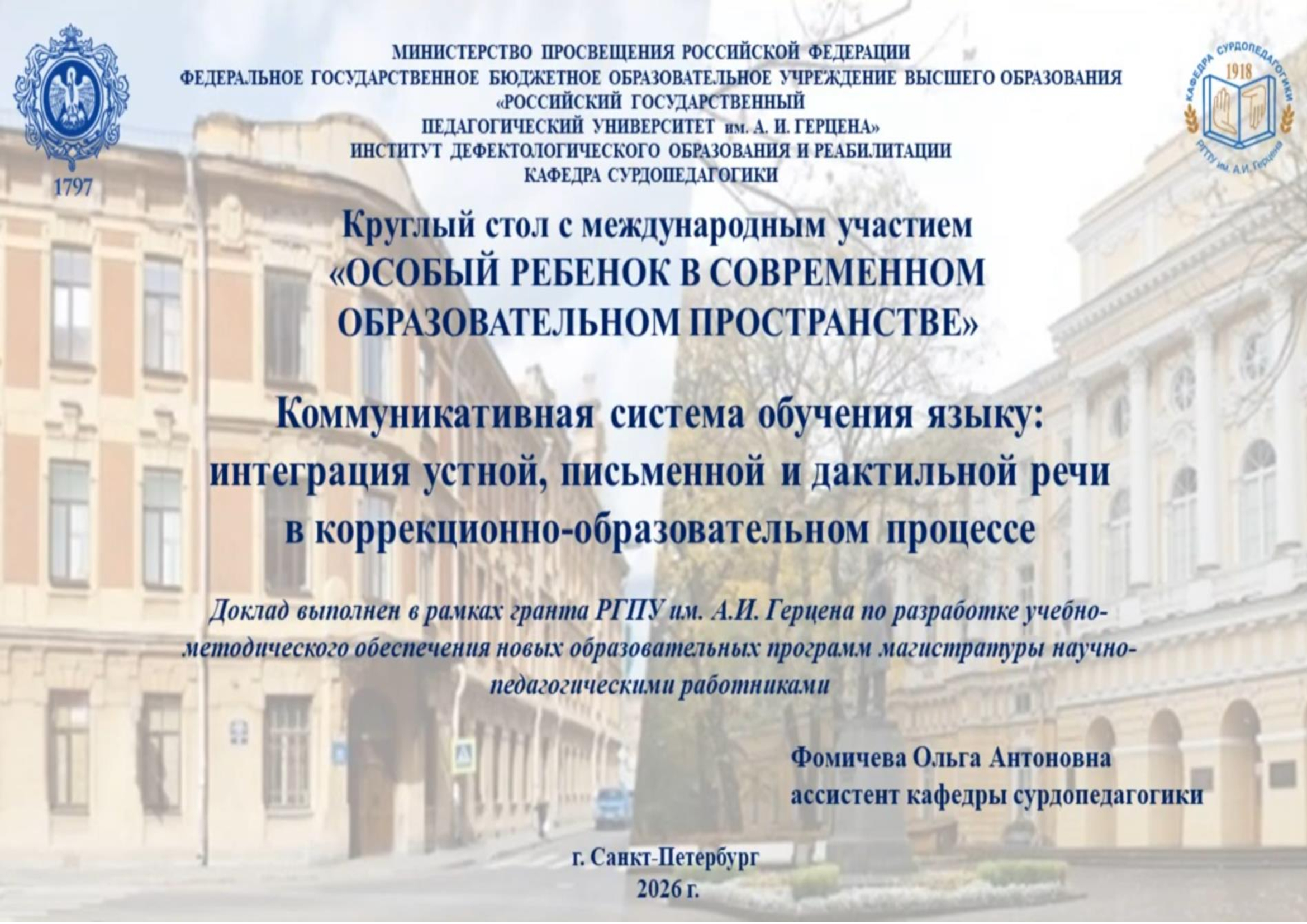 26 марта на кафедре специальной педагогики и психологии состоялся круглый стол с международным участием «Особый ребенок в современном образовательном пространстве», организованный вузами-партнерами - кафедрой сурдопедагогики РГПУ им. А.И. Герцена и  кафедрой специальной педагогики Кокандского государственного университета им. Мукими.