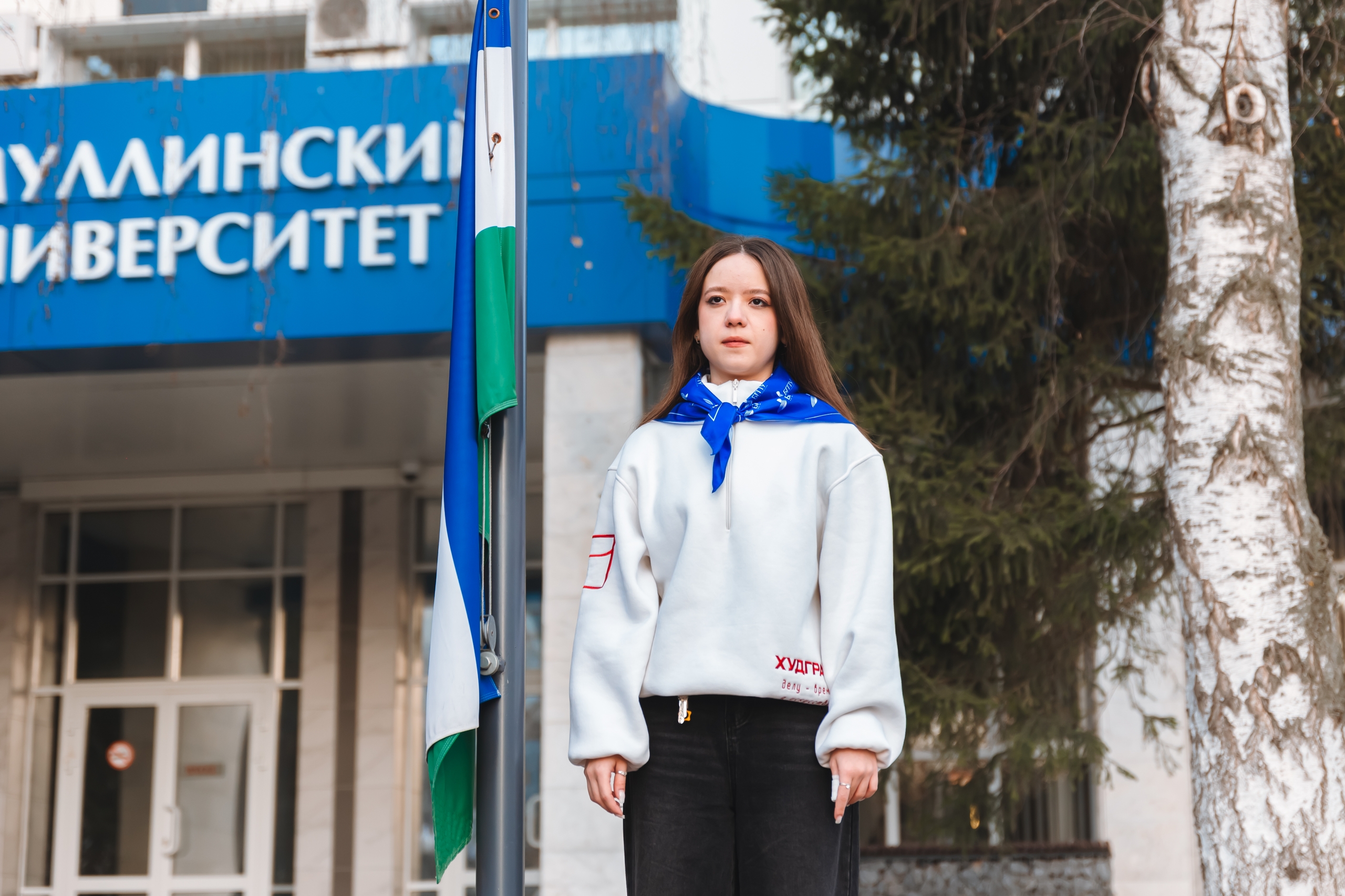 Студенты ХГФ подняли флаги перед Акмуллинским университетом