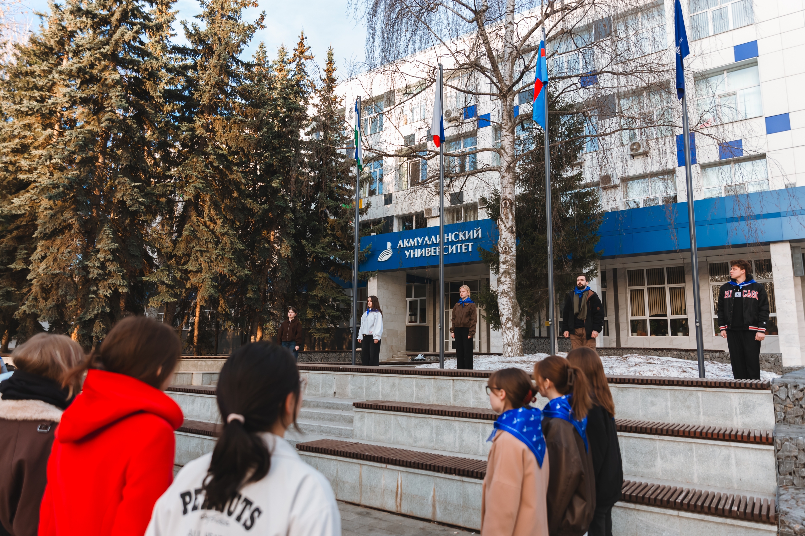 Утро 30 марта в Акмуллинском университете началось с торжественной церемонии поднятия государственных флагов Российской Федерации, Республики Башкортостан, флагов Министерства просвещения России и БГПУ им. М. Акмуллы. Участие в ней приняли студенты и преподаватели художественно-графического факультета.