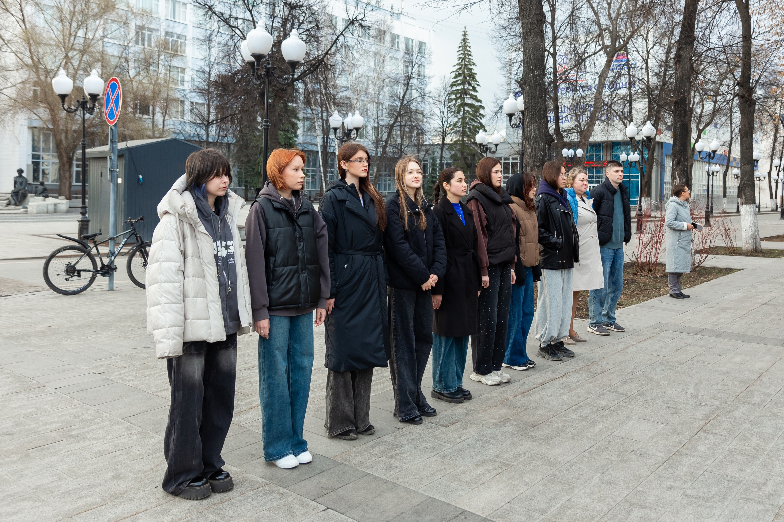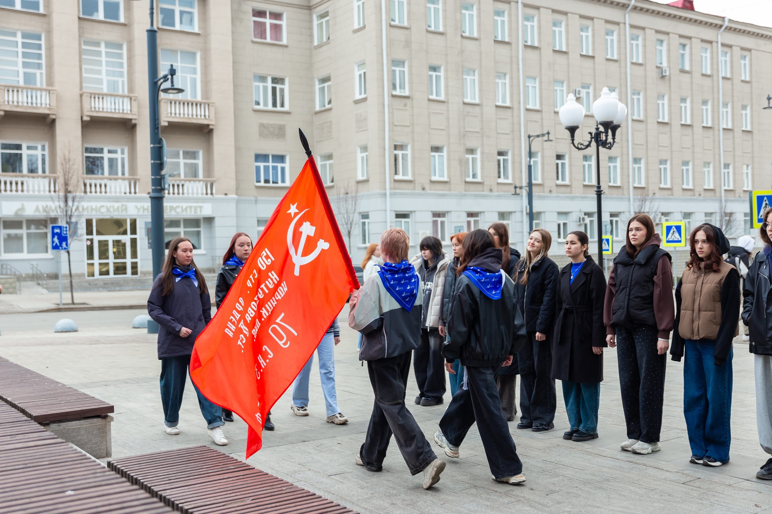 Почетное право поднять флаги на площади перед университетом получили студенты, имеющие особые достижения в общественной, спортивной и учебной деятельности: