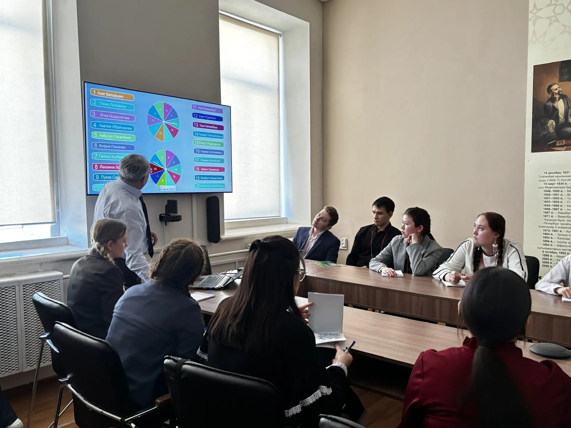 Во второй день для определения теоретических знаний участники конкурса проходили тесты по башкирскому языку и литературе, теории и методике их преподавания, а для их руководителей доцент кафедры башкирского языка и литературы Вадим Тулумбаев провел научно-методический семинар «Использование ИИ на уроках башкирского языка и литературы».