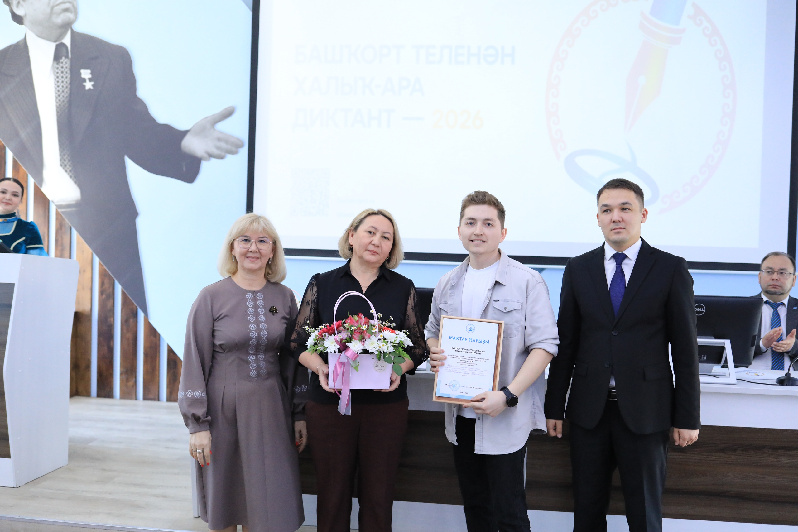 На торжественной церемонии награждения были объявлены победители, дипломы им вручили заместитель министра молодежной политики Азат Кильсенбаев и декан ФБФ Ляйля Хусаинова.