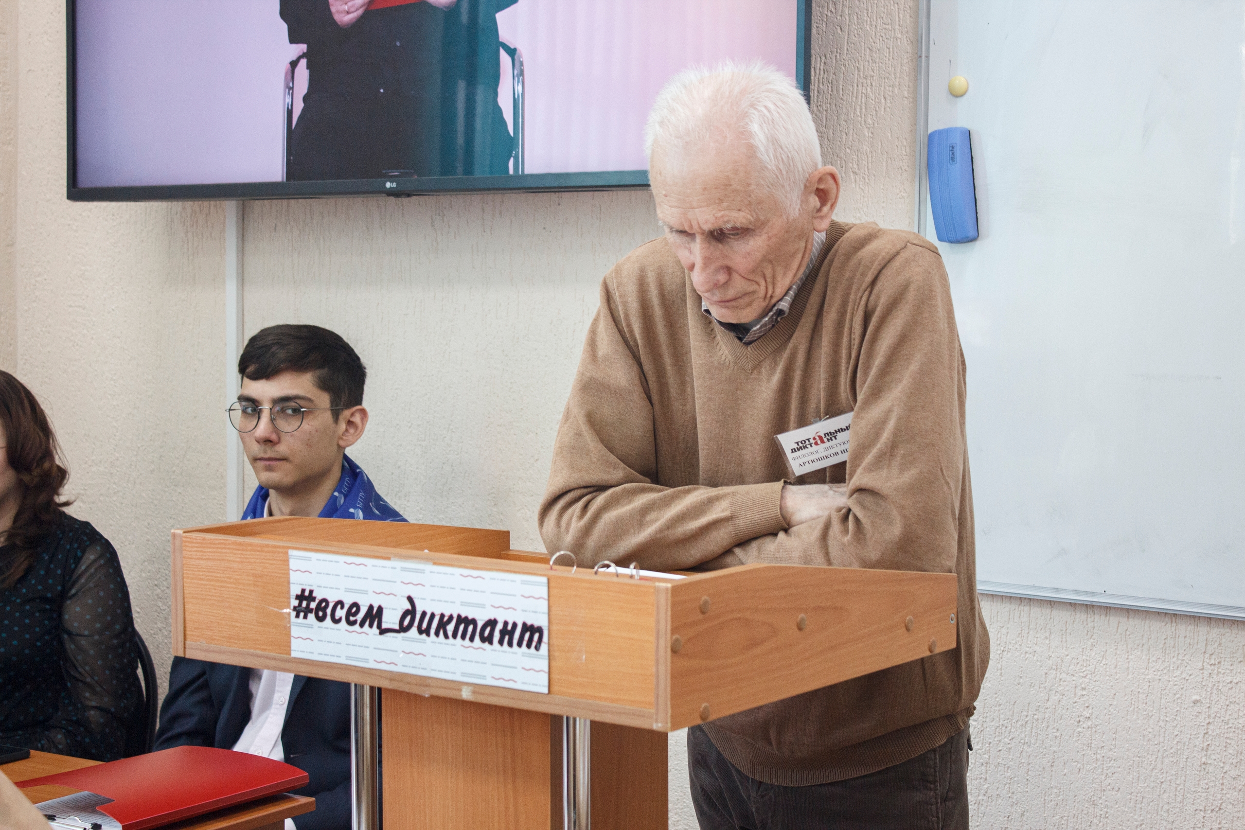 Аудитория тех, кто хочет написать диктант, всегда разная. Люди приходят целыми семьями. Бывают очень пожилые участники. Бывает, что приходят те, у кого есть проблемы со здоровьем – со слухом или зрением. Именно поэтому первые ряды в вузе всегда стараются оставить свободными для таких участников, чтобы им было максимально комфортно.