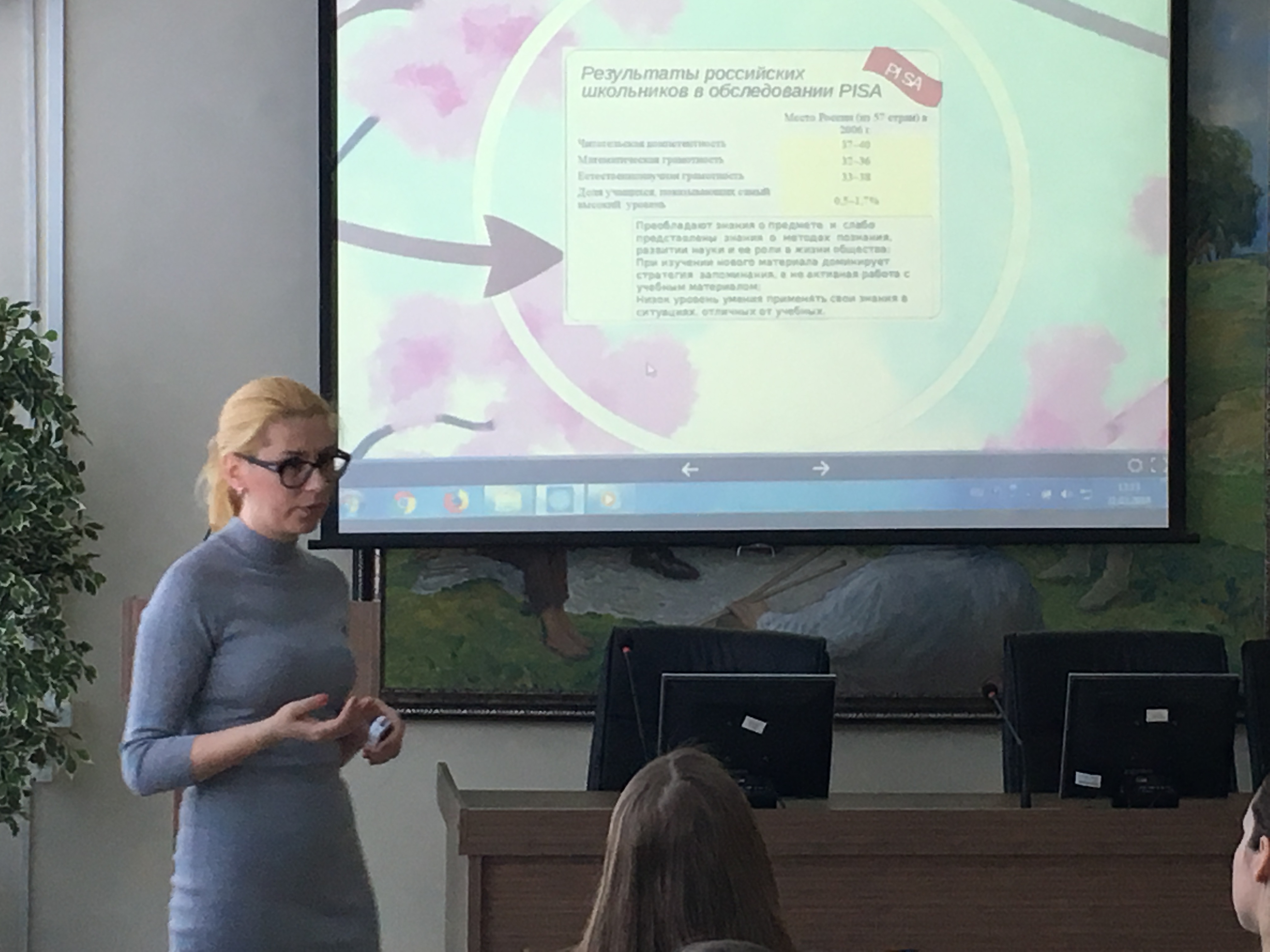 Юлия Геннадьевна отметила, что естественнонаучная грамотность включает в себя две наиболее важные компоненты: «Общепредметные» (общеучебные) умения и навыки, а также естественнонаучные понятия и ситуации. Участникам мастер-класса были предложены различного рода задания, решая которые они пришли к выводу об актуальности данной темы.