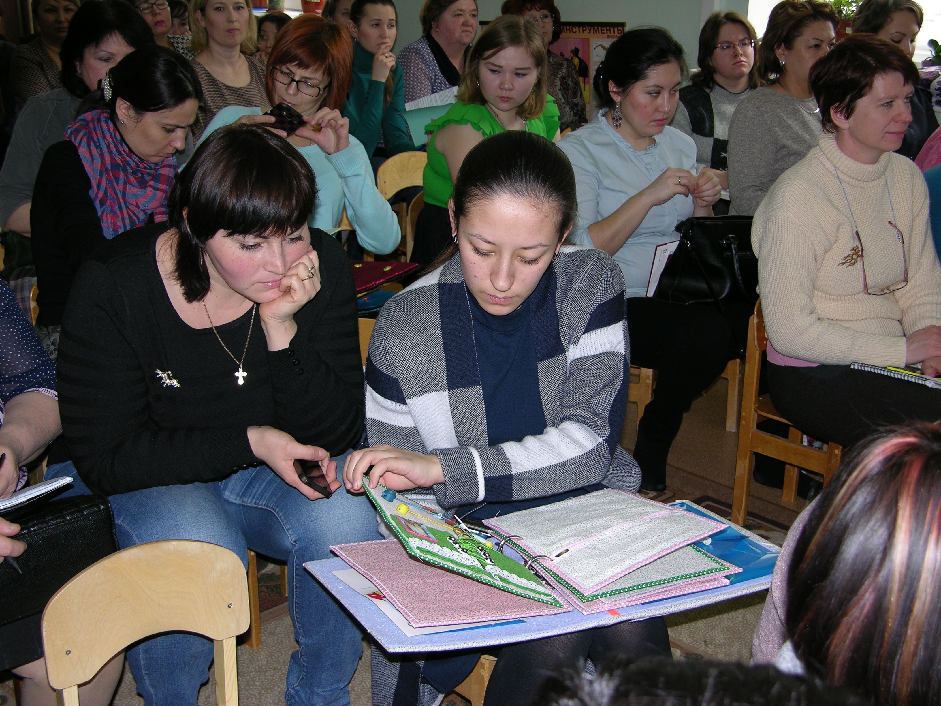 Рефлексия деятельности прошла через жестово-образную игру «зимнее облако». В процессе семинара и мастер класса проводились динамические паузы, аутотренинговые этюды «Занимательное речевое дело». Особый интерес вызвала у педагогов выставка пособий по развитию речи детей, экскурсия по садику. Завершился республиканский семинар проведением детской олимпиады.