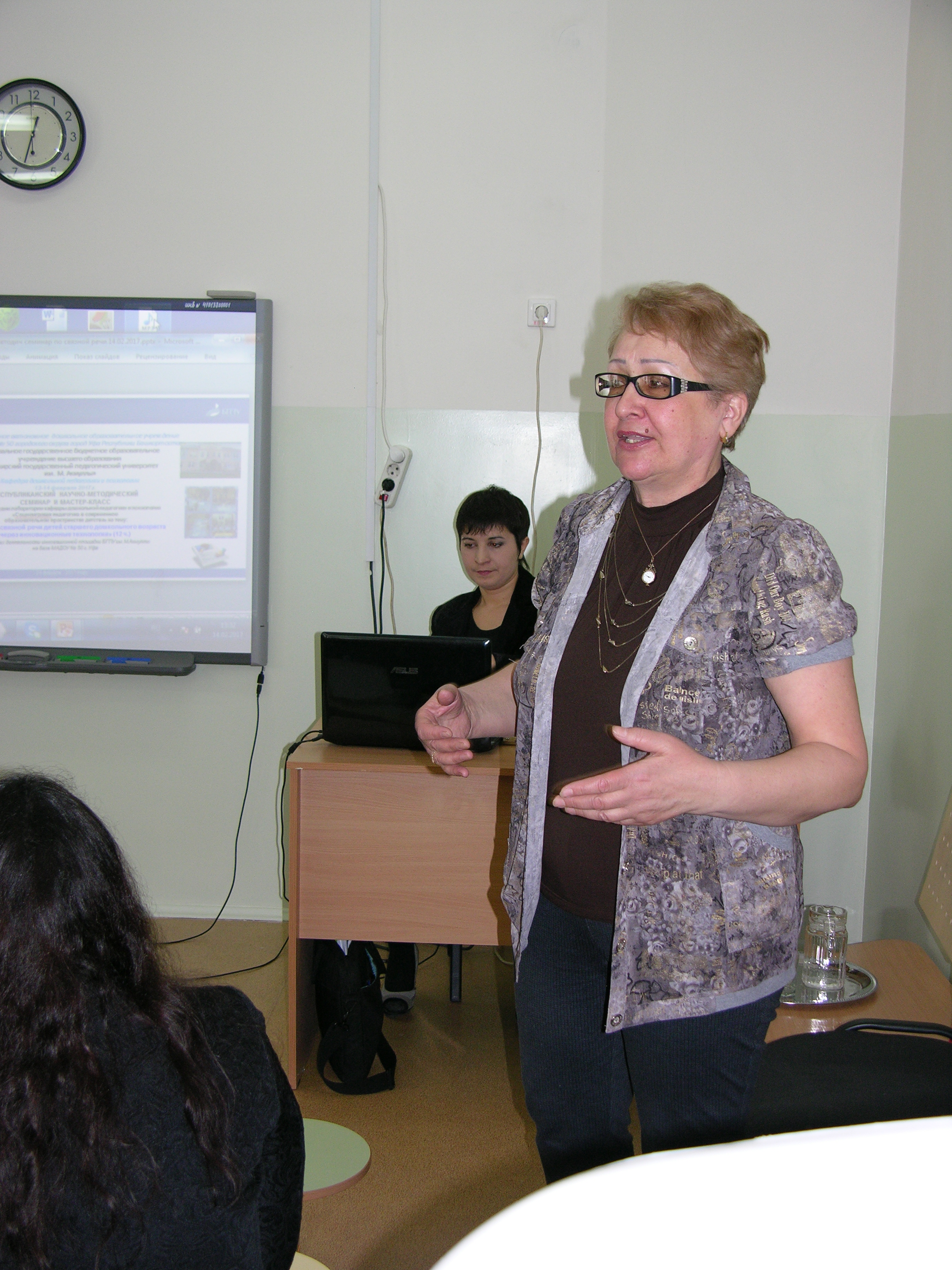 Докладчиками выступили: "Содержание инновационной работы по развитию связной речи старших дошкольников в свете ФГОС ДО" (к.п.н., доцент Шабаева Г.Ф.); «Использование инновационных технологий для развития связной речи детей» (магистр образования, учитель-логопед д/с № 266 Боровикова Т.В., г.Уфа; «Моделирование как средство развития связной речи дошкольников» (учитель-логопед д/с № 225, магистрант Данилова Н.А., г.Уфа); «Дидактические игры и круги Луллия в развитии связной речи старших дошкольников» (бакалавр, воспитатель Ахметзянова Р.М., г.Уфа); «Развитие связной речи через театрализованную деятельность». Интерактивное пособие «Лэпбук - квест по сказкам» (бакалавр дошкольного образования, воспитатель Хабирова В.А., с. Алкино); «Развитие диалогической и монологической речи через проектную деятельность» (бакалавры дошкольного образования, воспитатели Каракуц И.Е., г.Уфа; Сафина Э.Р., Кармаскалинский район, д.Старые Киешки); «Система работы по развитию связной речи дошкольников» (Тюленева Н.В., заведующая, магистр образования МДОБУ д/с «Дюймовочка» села санатория Юматово имени 15-летия БАССР; учитель-логопед Сапожникова Е.); «Реальный и виртуальный музей детства как эффективное средство развития связной речи детей (супервизор, воспитатель МБДОУ № 57, магистрант 2 к. Васильченко Л.С., г.Уфа); «Пластинография как эффективное средство развития связной речи детей старшего дошкольного возраста» Идельбаева А.М. (МДОБУ «Светлячок», г.Губкинский, ЯНАО).